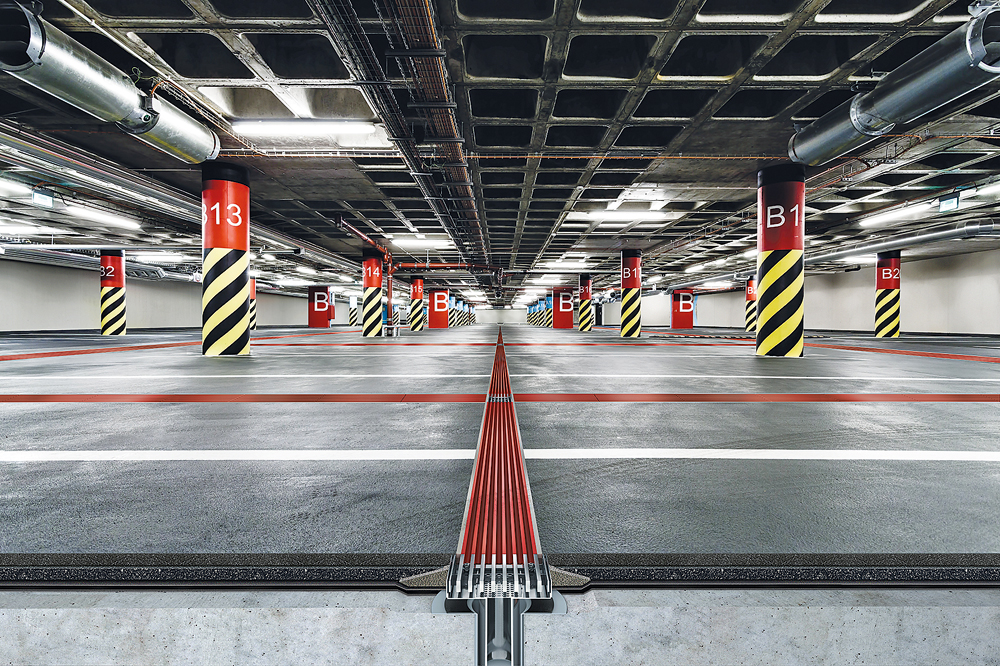 Neben diesen Produktlinien wird das Angebot für Parkhäuser und Tiefgaragen erweitert. Ein anschauliches Beispiel dafür, wie sich Gestaltung und Funktion mit reduziertem Aufwand verbinden lassen, präsentiert der Hersteller das System zur Parkhausentwässerung »MEARIN PG EVO«: Die nur 30 mm hohe Rinne ist als monolithisches Längsstabprofil gestaltet und erlaubt durch ihre flache Bauweise dünnere Geschossdecken.
