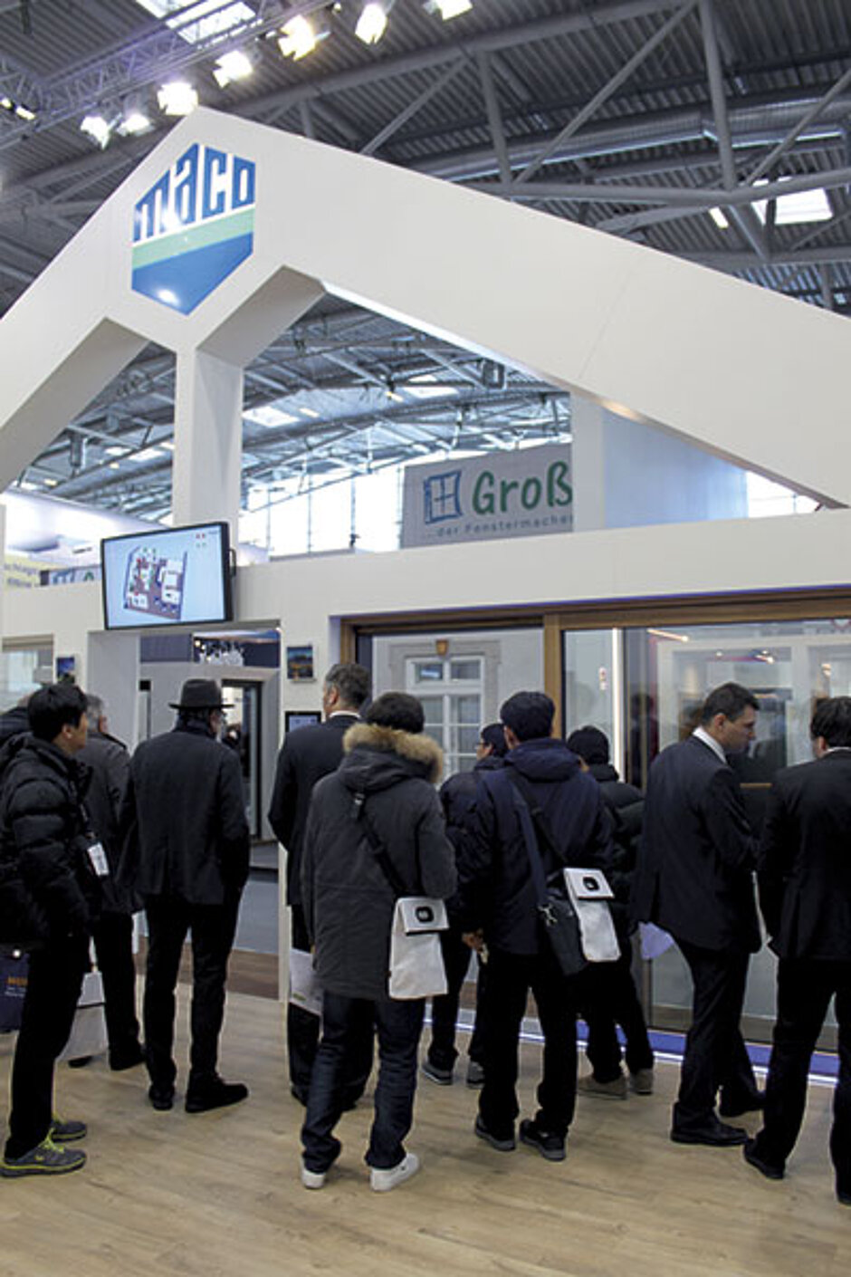 Von Jan RiekenSignifikant stieg die Vielfalt an internationalen Besuchern. Gäste aus west- und südeuropäischen Ländern kamen ebenso wie aus Osteuropa und vor allem Russland. »Wir merken, dass die Nachfrage besonders aus den Staaten der ehemaligen Sowjetunion stark ansteigt, während die Nachbarländer weniger stark zulegen oder sogar leicht zurückgehen«, sagte Ewald Marschallinger, als Geschäftsführer bei MACO für Vertrieb und Marketing zuständig, beim Besuch des baustoffPARTNER. Auch die erfolgreiche Präsenz auf der »Fenestration China« macht sich positiv bemerkbar_ Die dort positive Resonanz bekam MACO auch auf der BAU durch eine starke Zunahme an chinesischen Kunden zu spüren. Deutlich spürbar: MACO erfährt, dass solide, beständige und qualitativ hochwertige Arbeit anerkannt und von den Kunden honoriert wird.