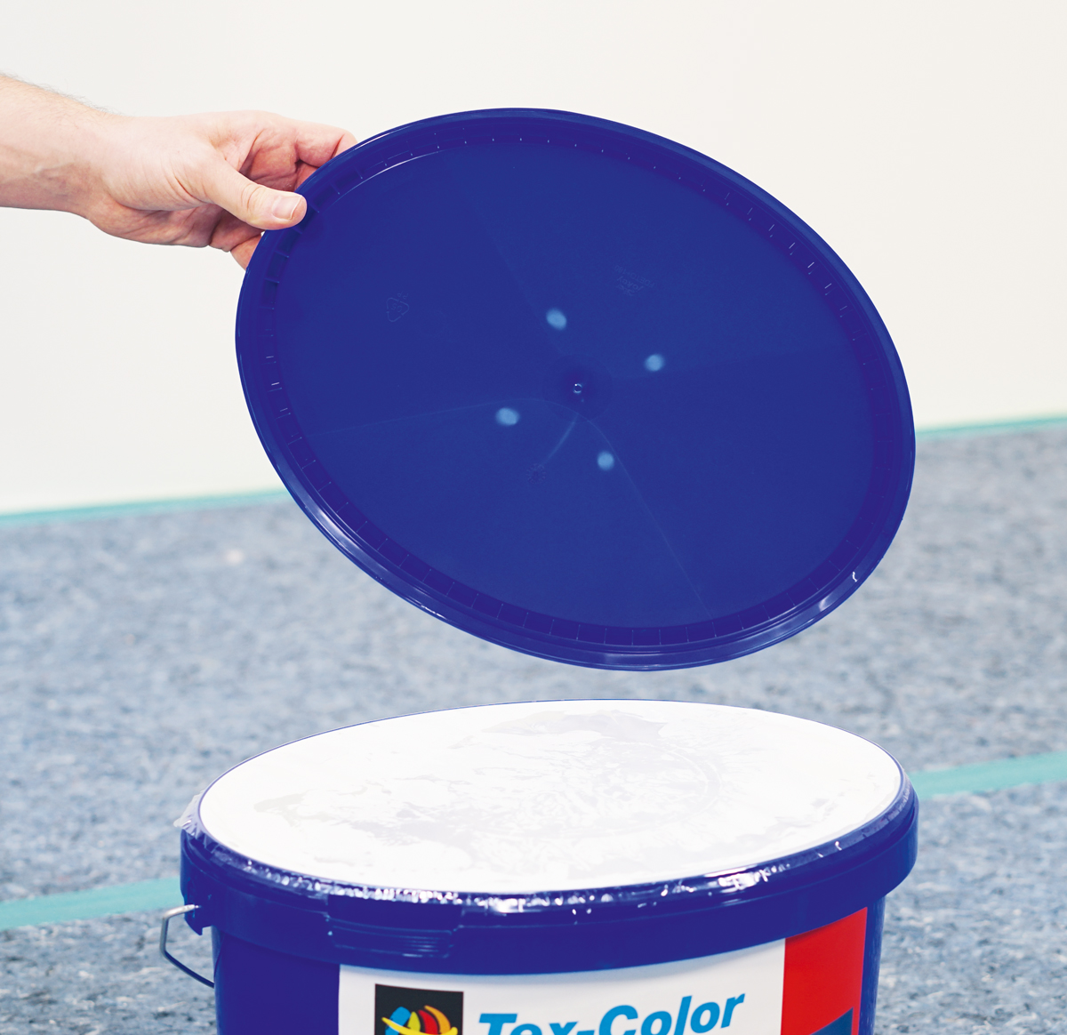 Mit der neuen Versiegelung kann keine Farbe beim Transport oder bei der Einlagerung die Deckelinnenseite verschmutzen. Das mühselige Aussieben von Klümpchen und körnigen Partikeln aus eingetrockneten Deckelanhaftungen ist Geschichte und die Haltbarkeit der Farbe ist zusätzlich stabilisiert. Die Sicherheitsfolie »SIFO« lässt sich ohne Kraftaufwand in einem Stück vom Gebinde lösen und kann dann im Gelben Sack entsorgt werden. In Phase eins stellt Tex-Color alle 12,5-Liter-Eimer »TC1118 Extrem Matt 1.0« und »TC1218 Premium Matt 2.0 Weißware« um. In Phase zwei folgen weitere Produkte und Gebindegrößen. J
