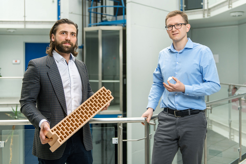 Aus unserer Forschungsarbeit wissen wir, dass bereits durch geringfügige Veränderungen des Ziegellochbilds unterschiedliche bauphysikalische Eigenschaften optimiert werden können’, sagt Dipl.-Ing. Tristan Klein, Geschäftsführer von Mein Ziegelhaus. Bislang war es jedoch kosten- und vor allem zeitaufwändig, Modifizierungen vorzunehmen. So musste ein Presswerkzeug aus Stahl für jedes Lochbild einzeln und vollständig hergestellt werden. Ein Prozess, der bis zu sechs Monate dauern kann. Der 3D-Druck verkürzt diese Zeit auf nur noch zwei bis drei Wochen. Neu an dem Verfahren ist auch, dass lediglich kleine Keramik-Elemente individuell gedruckt und dann in bestehende Presswerkzeuge eingesetzt werden. Klein: ‘Der 3D-Druck versetzt uns heute in die Lage, schnell auf aktuelle Forschungsergebnisse reagieren und kurzfristig Anpassungen an den Presswerkzeugen vornehmen zu können.’