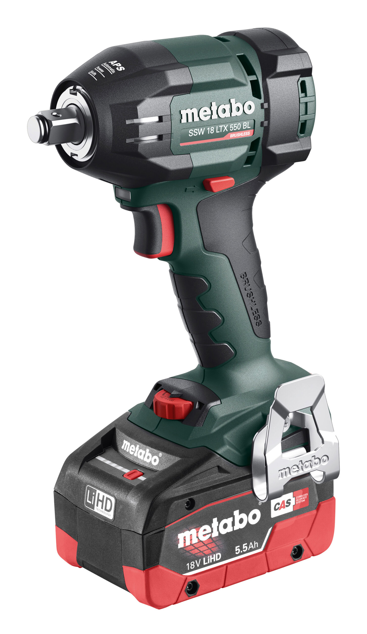 Der Metabo-Brushless-Motor nutzt den Akkustrom effizient, liefert lange volle Kraft und ist nahezu wartungsfrei. Alle 18V-CAS-Akkus sind kompatibel – von »LiPower«-Akkus mit 4 Ah bis zu »LiHDX«-Akkus mit 8 Ah Kapazität. Trotzdem ist es bei Schlagschraubern empfehlenswert, einen Akku zu wählen, der viel Strom liefert. Dafür sind der 5,5-»LiHD« oder der 8,0-»LiHDX« die beste Wahl.