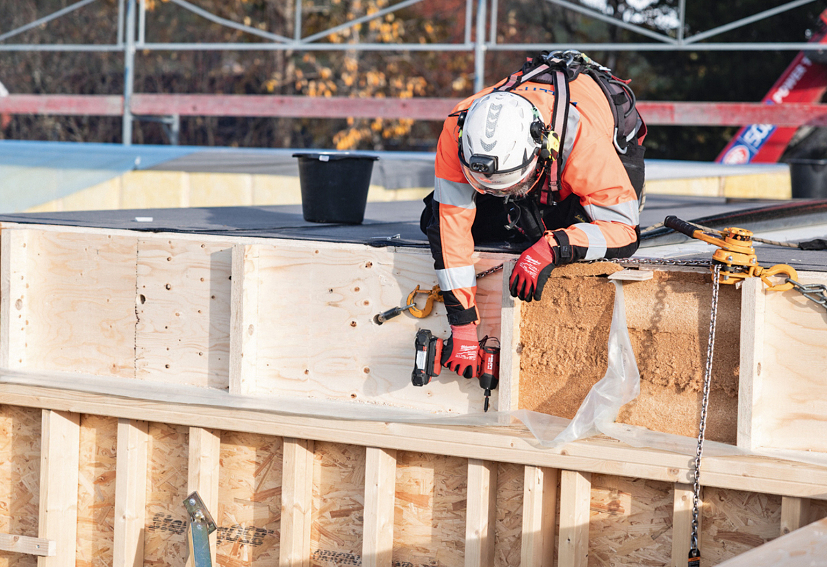 Die Nachhaltigkeitsanforderungen in der Baubranche steigen – europaweit und in der ganzen Welt. Das Thema hat sich längst von einem »Nice-to-have« zu einem »Must-have« entwickelt. Entsprechend sind innovative Produkte gefragt, die neue Standards setzen und ihre Nachhaltigkeit belegen können. Vor diesem Hintergrund geht jetzt auch der norwegische Dachelemente-Spezialist Lett-Tak neue Wege und hat ein nachhaltiges Dachelement aus Holz entwickelt. Die Basis: »Kerto LVL« von Metsä Wood. »Kerto LVL« ermöglicht mit seiner Festigkeit und dem geringen Gewicht große Spannweiten bei gleichzeitig hoher Stabilität für das neuartige Dachelement. Die harte Oberfläche bietet dabei gute Befestigungsmöglichkeiten und eignet sich ideal für die Installation von beispielsweise Solarpaneelen. Die Steifigkeit und das ausgeklügelte Festigkeits-Gewichts-Verhältnis von »Kerto LVL« minimieren das Risiko der Durchbiegung. Das Dachelement ist zudem besonders schlank. Mit seinen großen Spannweiten von bis zu 16 m bietet es architektonische Freiheit, reduziert den Bedarf an Stützen und ermöglicht darüber hinaus eine schnelle Montage. In Zukunft wird es in noch längeren Maßen erhältlich sein. Der U-Wert ab 0,09 W/m²K erweist sich als besonders niedrig. Zudem erfüllt das Element die Feuerwiderstandsklassen REI 15, 30 und 60.