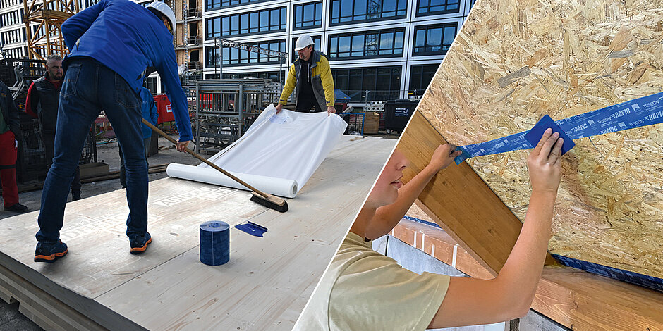 Das Klebeband eignet sich im Innenbereich für die luftdichte Verklebung von Dampfbremsen und Luftdichtungsbahnen sowie von luftdichten Holzwerkstoffplatten. Außen erfolgt die Anwendung zur Herstellung der Winddichtheit und der Regensicherheit von Unterdeck-, Unterspann- und Wandschalungsbahnen sowie Unterdeckplatten. Außerdem eignet es sich zur luftdichten Verklebung von Aufdach- und Sanierungs-Dampfbremsen sowie Luftdichtungsbahnen. Sämtliche Verklebungen innen und außen können sowohl untereinander als auch an angrenzende glatte, nichtmineralische Bauteile erfolgen (zum Beispiel Rohrdurchdringungen und Dachflächenfenster). Beide Produktneuheiten sind ab Mai erhältlich.