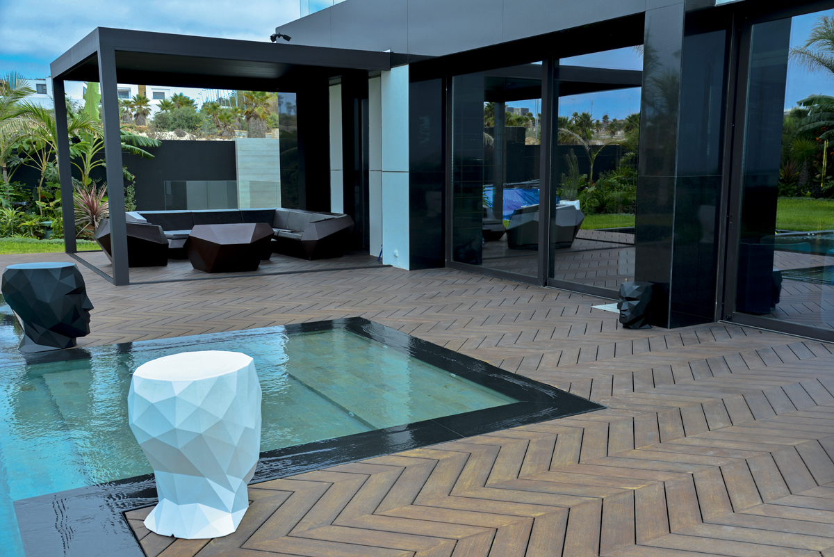 Erst die hohe Stabilität des Materials »Bamboo X-treme« hat die Entwicklung der neuen Chevron-Terrassendiele möglich gemacht. Sie hat eine Breite von 137 mm, eine Länge von 566 mm und ist 20 mm stark. Bereits werkseitig erhält jede Diele an beiden Stirnseiten einen 45°-Winkel mit Fase. Damit die Terrasse im Fischgrät-Muster gelingt, liefert Moso eine Verlegehilfe mit: Passgenaue Winkel sichern die richtige Ausrichtung der Dielen, die dank des asymmetrischen Clip-Systems verdeckt montiert werden und nicht durchgebohrt und verschraubt werden müssen. »Uns ist es wichtig, für Verarbeiter die Montage so sicher und komfortabel wie möglich zu machen. Das spart Zeit, Material und am Ende vermeidet es auch Gewährleistungsansprüche«, so Michael von Houten, verantwortlich für den Vertrieb in der DACH-Region. Werden die Terrassendielen korrekt verarbeitet, halten sie den Umwelteinflüssen laut Moso mindestens ein Vierteljahrhundert stand. Das Unternehmen gewährt deshalb auch eine Garantie von 25 Jahren. J