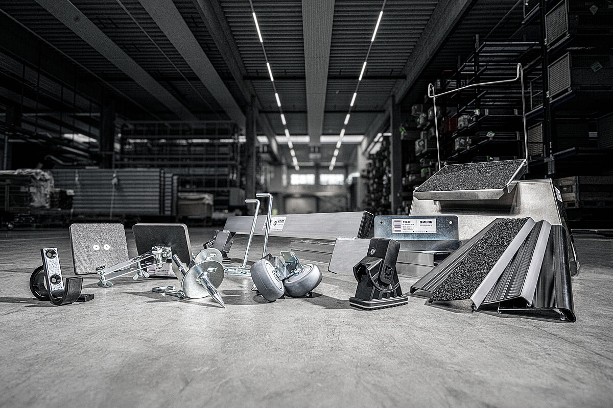 Auch das zeigt der Steigtechnik-Ratgeber 2026: Mit dem richtigen Zubehör lassen sich Effizienz, Sicherheit und Flexibilität im Arbeitsalltag erhöhen. Das gilt vor allem für Produkte wie den flexiblen Leiterschuh »nivello«, Leiterkopfsicherungen für einen festen Halt oder auch das Rollensortiment der Munk Günzburger Steigtechnik. Damit lassen sich Leitern, Tritte oder Podeste ergonomisch und kraftsparend transportieren. Für ein Plus an Sicherheit beim Auf- und Abstieg sorgen Handläufe, Geländer, Sicherungstüren oder Ausstiegsholme. Das Gleiche gilt für die rutschhemmenden »clip-step«-Trittauflagen für Stufenleitern, die sich auch nachrüsten lassen.