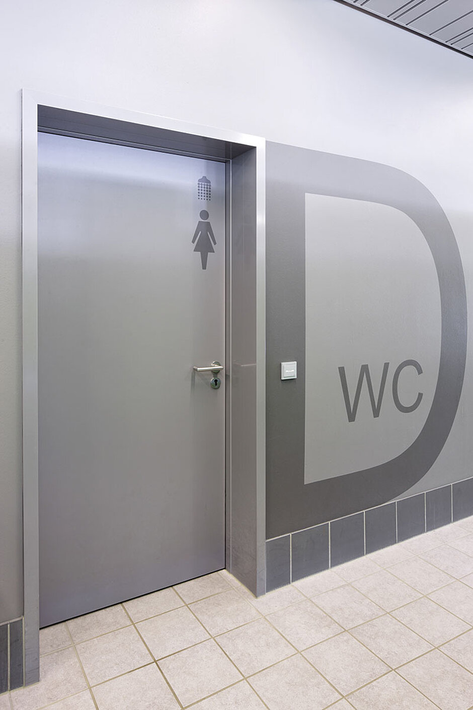 Diese Spezialtür wird holz- und holzwerkstofffrei hergestellt und besteht zu einhundert Prozent aus nässeunempfindlichem Material – unter anderem auf Polyurethanbasis. Wird nur die Türblattkante aus wasserresistentem Material gefertigt, wie es bei den meisten anderen Marktlösungen häufig der Fall ist, kann es bei einer erhöhten Benutzerfrequenz zu Abnutzen der Kante und in Folge dessen zu eintretender Nässe und irreversiblen Schäden kommen. Dass Schörghuber bei der T30-Nassraumtür gezielt auf eine holz- und holzwerkstofffreie Fertigung setzt, zahlt sich für die Langlebigkeit der Tür aus und wurde vom ift Rosenheim mit dem Eignungsnachweis für Nassraumtüren zertifiziert.