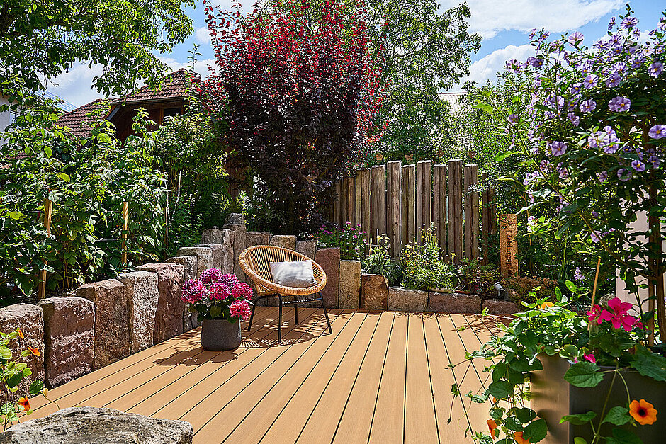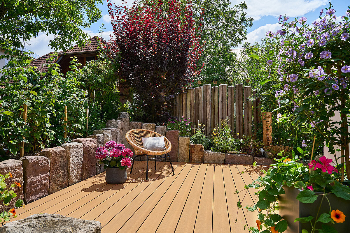 Für private Außenbereiche eignet sich die Diele »Piazza Prima« aus dem coextrudierten Dielensortiment von Naturinform. Ihre Oberfläche ist mit einer feinen Holzmaserung geprägt. Mit nur 19 mm Dielenhöhe vereint sie alle Qualitätsmerkmale ihrer Geschwister: 360°-Ummantelung, natürliche Holzoptik und Pflegeleichtigkeit. Die Farbauswahl reicht von Muskat, Eichenbraun und Königsulme bis hin zu Nordischer Esche, Graphitgrau und Ebenholz. Dank ihrer schlanken Geometrie ist die »Piazza Prima« für Terrassen mit einer für private Terrassen üblichen Belastung vorgesehen.