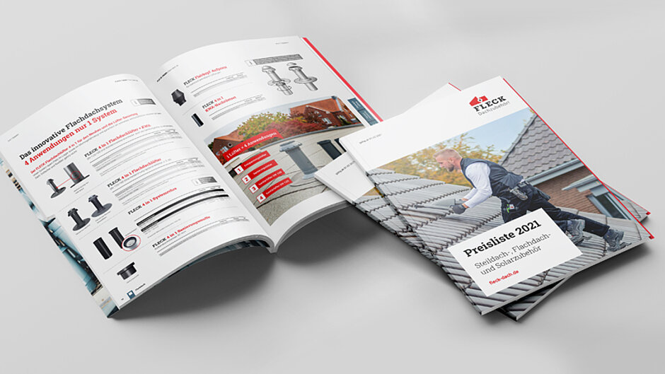 FLECK ist es gelungen, die neue Preisliste durch ein ansprechendes Design noch moderner und übersichtlicher zu gestalten, ohne die gelernte und bewährte Struktur wesentlich zu verändern. Der Aufbau der Preisliste ist in Flachdach-, Steildach- sowie Solar-Zubehör gegliedert und die Übersichtsseiten zu den Farben- und Folienaufpreisen sind nach wie vor im Ausklapper zu finden. Dazu vereinfachen QR-Codes die schnelle Suche auf der Website. „Wir wollen dadurch sowohl Händlern als auch Verarbeitern die Arbeit mit unserer Preisliste so angenehm und einfach wie möglich gestalten.“, kommentiert Peter Nowack, Produktmanager bei FLECK, die neue Aufmachung der Preisliste.