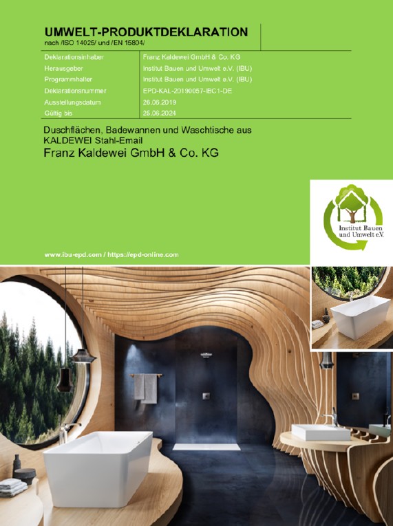 Kaldewei zählt zu den Vorreitern in der Branche bei der Förderung nachhaltigen Bauens. Aktuell hat das Institut Bauen und Umwelt e. V. (IBU) die erstmals in 2009 veröffentlichte Umweltproduktdeklaration EPD (engl. Environmental Product Declaration) für die Badlösungen aus Kaldewei Stahl-Email um weitere fünf Jahre verlängert. In der neuen Deklaration finden Planer und Architekten neben den Daten für Bade- und Duschwannen bzw. Duschflächen jetzt auch diejenigen für die Kaldewei Waschtische.