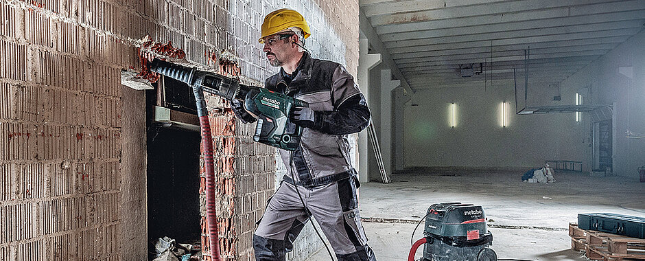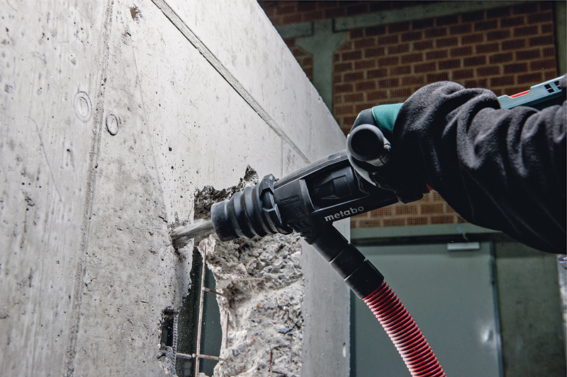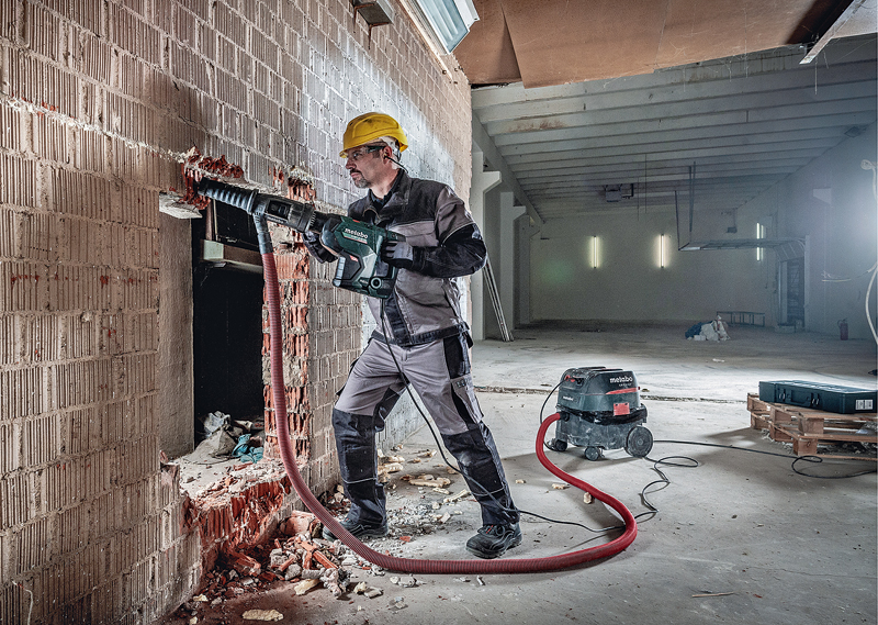 Außer Vibrationen erschwert noch etwas anderes die Arbeit: Stäube. Denn das Hammerbohren oder Meißeln in Beton, Mauerwerk oder Stein ist in der Regel alles andere als eine saubere Sache. »Eine effektive Staubabsaugung ist nicht nur gesundheitsschonend, sondern vielerorts durch Berufsgenossenschaften oder Organisationen vorgegeben«, sagt Stoschus.
