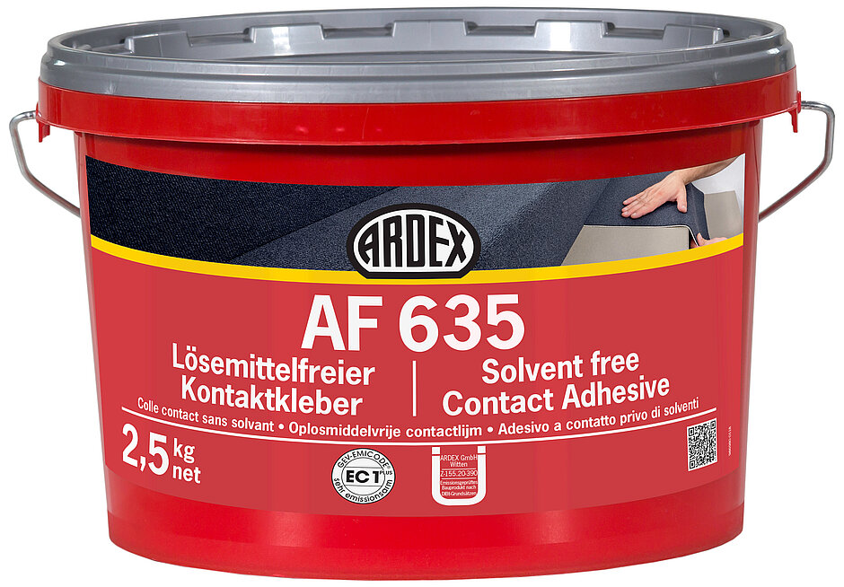 Der neue Ardex-Kontaktkleber ist ideal für die Verarbeitung in kritischen Bereichen, die im Baustellenalltag immer wieder vorkommen. Dazu gehört die Verlegung elastischer und textiler Beläge auf Treppenstufen und an Treppenkanten ebenso wie auf Wandflächen. „Gerade bei der Verklebung an Wandflächen ist die Belastung hoch, weil das Eigengewicht des Belags eine große Rolle spielt“, sagt Martin Kupka, stellvertretender Leiter der Anwendungstechnik bei Ardex. „Aber auch bei Treppenkanten muss der Kleber den Spannungen, denen der Belag ausgesetzt ist, entgegenwirken. ARDEX AF 635 kombiniert die hohe Anfangsfestigkeit mit einer hohen Endfestigkeit und ist deshalb ideal für solche Einsatzbereiche.“ Zudem ist der neue Kontaktkleber lösemittelfrei und besonders emissionsarm – er trägt das Emicode Siegel EC1 Plus.