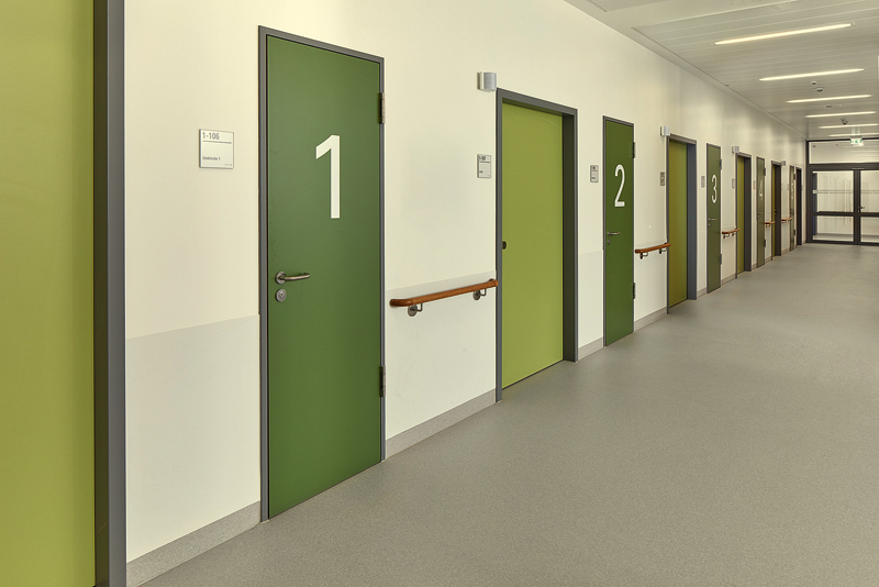Auf der Notfallstation eines Krankenhauses herrscht eine besondere Stimmung: Patienten kommen spontan mit akuten Beschwerden, das Krankenhauspersonal muss schnell reagieren, Entscheidungen treffen und vor allem auf kurzen Wegen hindernisfrei behandeln können. Dazu sind Abläufe sowie medizinische Geräte und die Raumausstattung optimal aufeinander abgestimmt. Das Farbkonzept für Räume und die neuform-Objekttüren geben intuitiv Orientierung. Das Türkonzept bewahrt die Privatsphäre, bietet hohen Schall- und Brandschutz und ist so konzipiert, dass es sich unauffällig in die Abläufe integriert sowie geräuschlos Zugang gewährt.