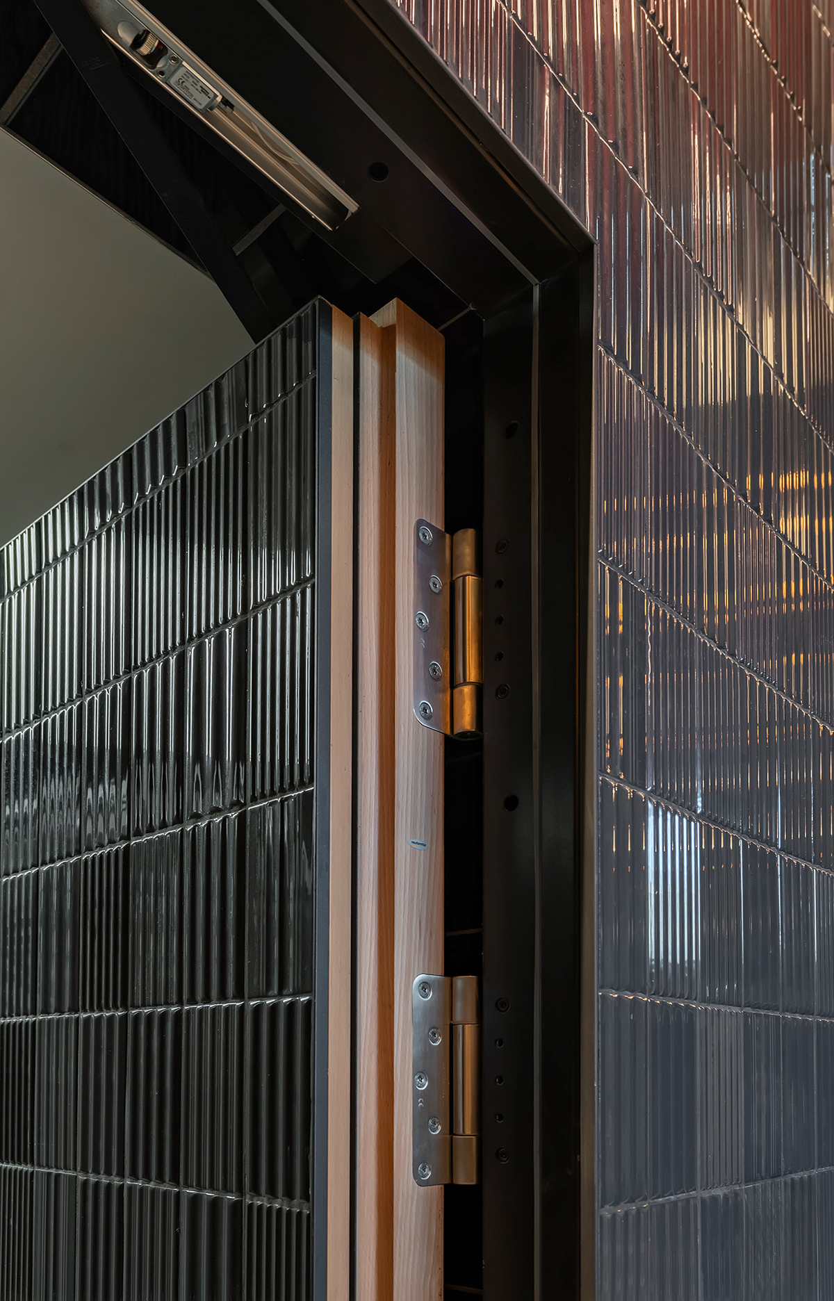Kombiniert wurden schichtverleimte Holzstockzargen, die durch ihre hohe Maßvariabilität überzeugen und in nahezu jeder Oberfläche verfügbar sind. Sie ermöglichen flexible Einbaumöglichkeiten, verschmelzen harmonisch mit der Wandgestaltung und lassen sich vielseitig kombinieren und montieren – ideal für anspruchsvolle Architekturlösungen. Ergänzt wurden sie durch robuste und formstabile Stahlzargen, die sich durch exakte Profilgeometrie und hohe Formstabilität auszeichnen. Auch bei intensiver Nutzung gewährleisten sie dauerhaften Halt und einen präzisen Sitz der Türblätter.