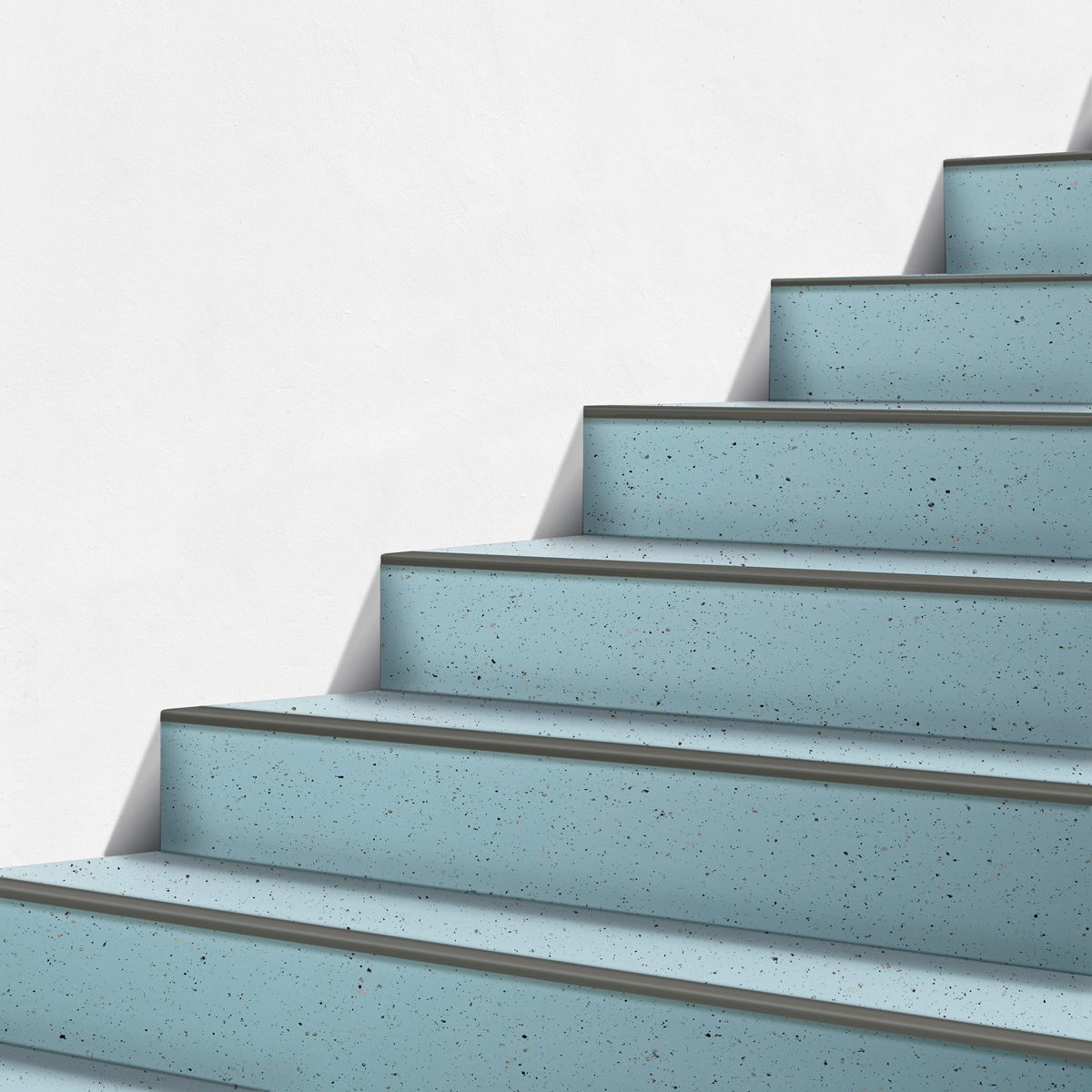 Auch was den Leuchtdichtekontrast betrifft, gibt es bei der Treppengestaltung in öffentlichen Gebäuden Vorgaben: Als Leuchtdichtekontrast wird die vom menschlichen Auge wahrgenommene Helligkeitsdifferenz eines Objektes zu seiner Umgebung bezeichnet. Nach DIN 32975 müssen sich Stufenmarkierungen kontrastierend sowohl gegenüber den Tritt- und Setzstufen als auch gegenüber den jeweils unten anschließenden Podesten abheben. Der Leuchtdichtekontrast muss mindestens 0,4 betragen. »Hier bietet die Treppenkante ›T 5055‹ mit ihren sechs Farbtönen in verschiedenen Helligkeitsabstufungen Optionen für jeden Anwendungsbereich«, so Hoock weiter. Die unterschiedlichen Farbtöne lassen sich gut kombinieren und ermöglichen Planern somit Gestaltungsfreiheit. Das Farbspektrum reicht von Schwarz über Grau und Taupe bis zu hellem Beige. J