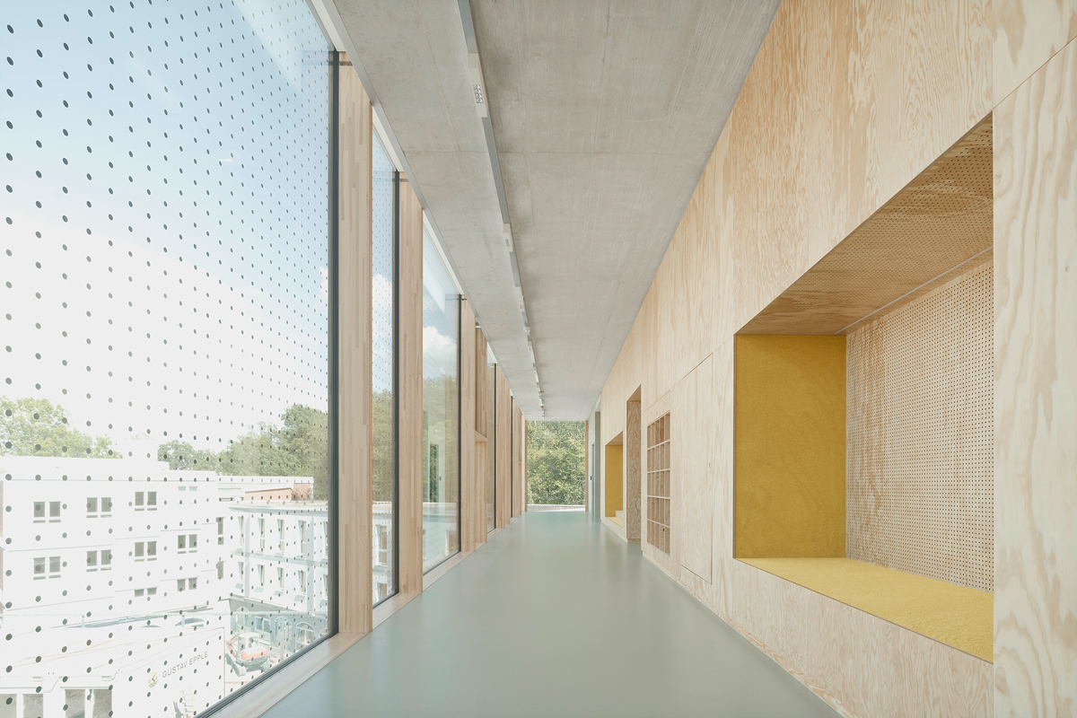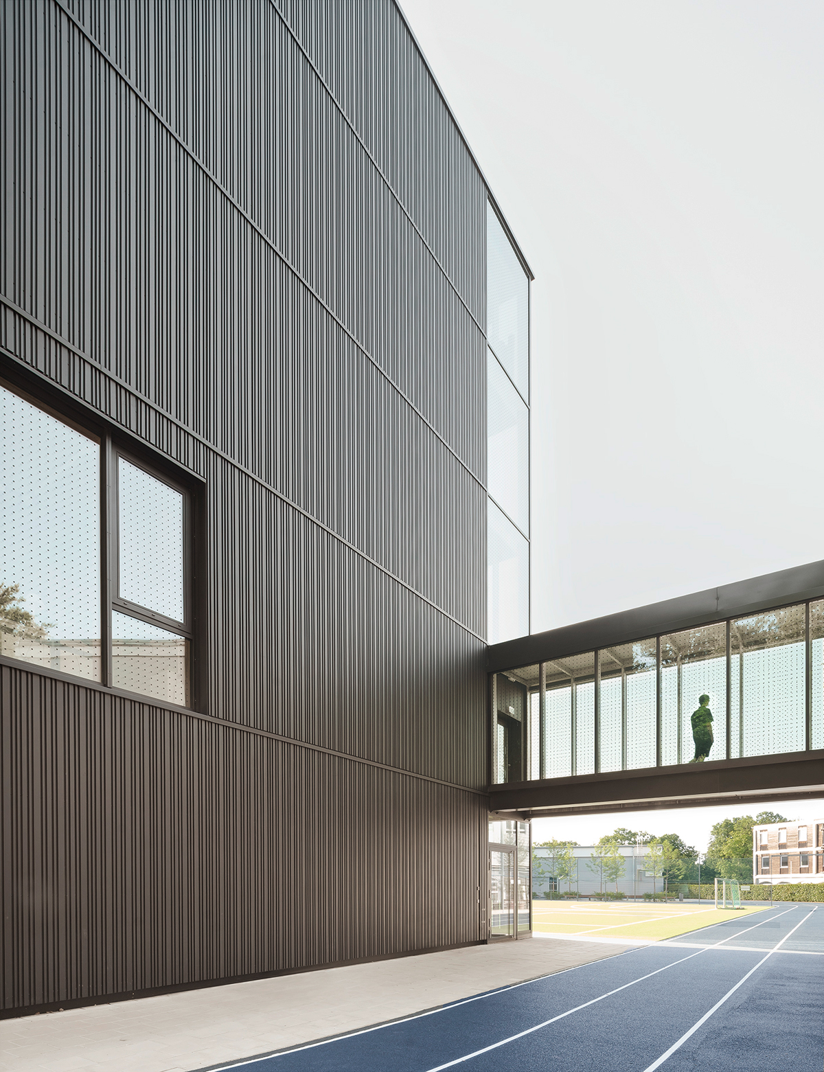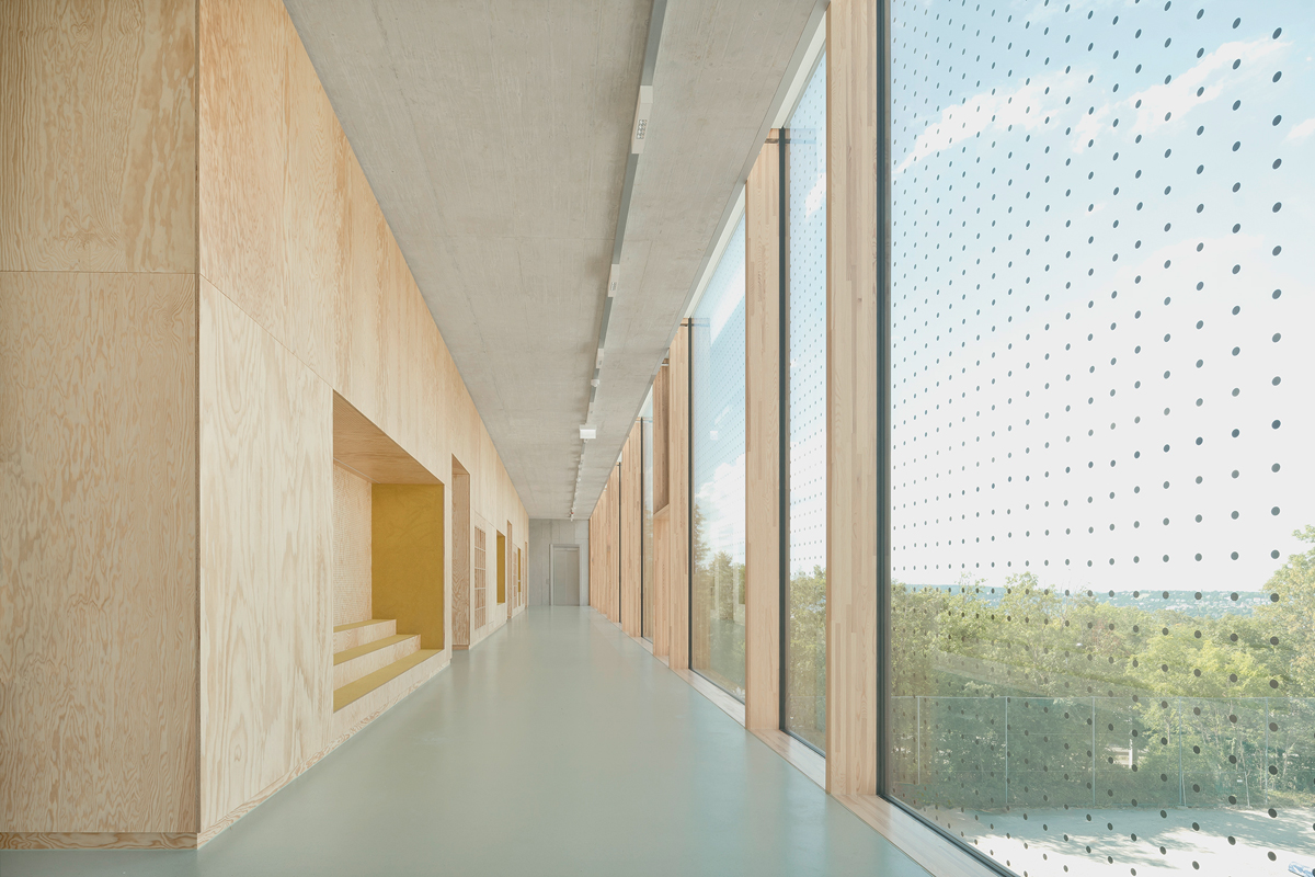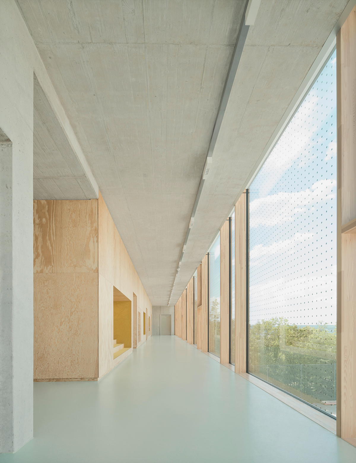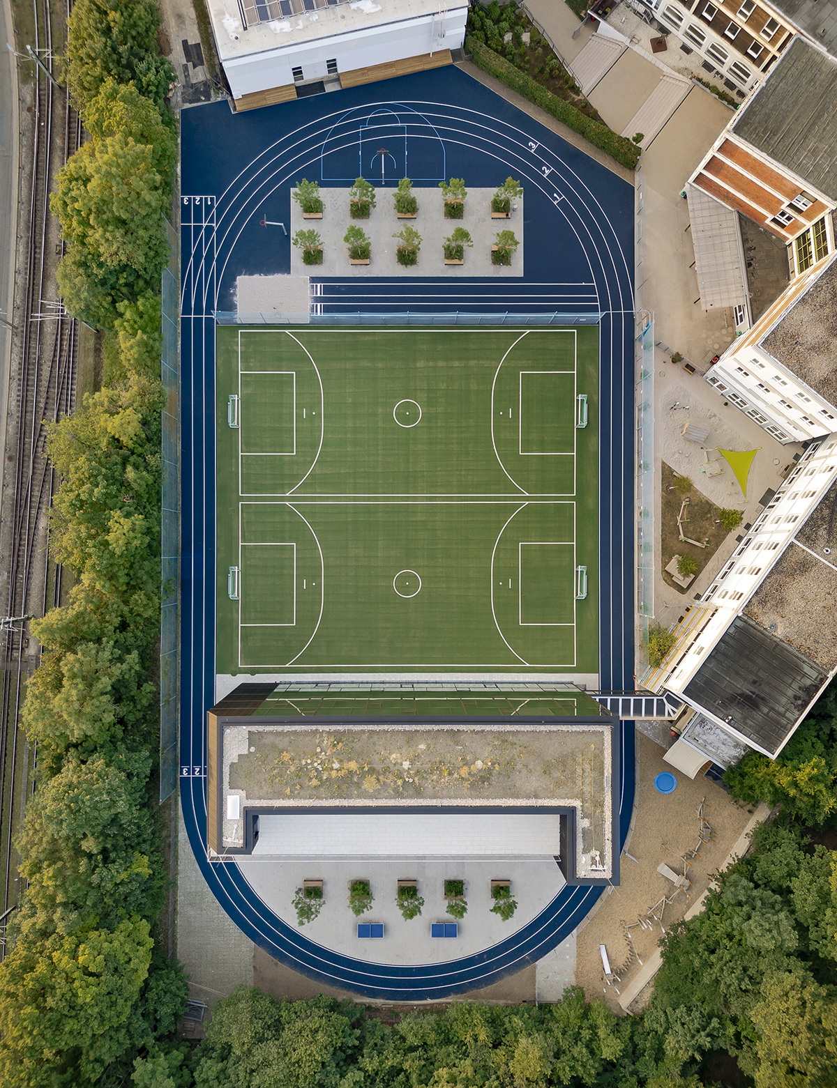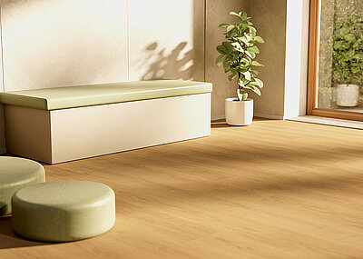 Neben funktionalen Aspekten spielte auch die Materialgesundheit eine entscheidende Rolle. »Wir achten immer darauf, schadstoffarme Baumaterialien zu verwenden«, erläutert Spetzler. Die Kautschukbeläge erfüllen diese Anforderungen in besonderem Maße: Sie sind emissionsarm und mit zahlreichen internationalen Umweltzertifikaten ausgezeichnet. Damit zählen sie zu den besonders umweltverträglichen und sicheren Bodenbelägen – und leisten einen Beitrag zu einem gesunden Lernumfeld.
