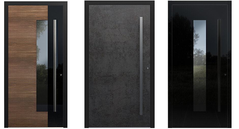 Die Modelle der »Ceramo«-Linie setzen auf moderne Quarz-Sinter-Füllungen, die durch außergewöhnliche Kratzfestigkeit und Stabilität überzeugen. Die auf das Paneel aufgebrachten keramischen Oberflächen in markanten Farben wie »Kortenstahl« oder »Beton hell« verleihen dem Eingangsbereich eine puristische Ästhetik. Schlichte Formen und reduzierte Details sorgen für einen zeitlosen Look.