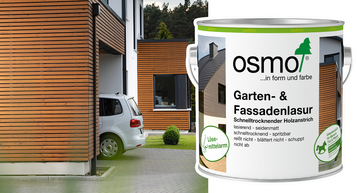 Nach einer Trocknungszeit von etwa drei bis vier Stunden bei guter Belüftung kann bei Bedarf feinkörnig zwischengeglättet werden, ehe der zweite Anstrich erfolgt. Im Renovierungsfall bzw. beim Überstreichen eines vorhandenen offenporigen Anstriches genügt in der Regel ein Anstrich. Sollen Fassade, Carport und Co. zusätzlich gegen Fäulnis, Bläue und Insektenbefall geschützt werden, empfiehlt sich außerdem ein Erstanstrich mit einem Osmo-Holzschutz auf dem rohen Holz. Alternativ kann für einen physikalischen Holzschutz bei besonders bläueanfälligen Hölzern wie Kiefer oder Tanne der biozidfreie »Osmo Holzschutz-Grund WR 4041« verwendet werden.