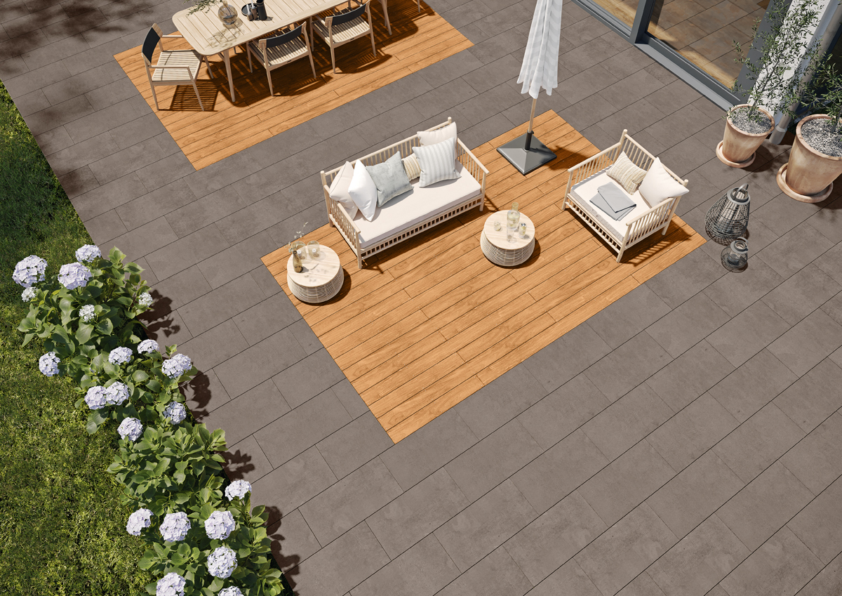 Das neue Terrassensystem bietet zudem eine große Gestaltungsvielfalt – es lassen sich Osmo Terrassendielen mit Keramikplatten in neun Farbtönen sowie zwei Größen kombinieren. So gelingt für jede Terrassengröße und -aufteilung eine individuell passende Verlegung. Gleichzeitig verspricht »Cewo-Deck« hohe Flexibilität, denn die Unterkonstruktion aus langlebigem, witterungsresistentem Aluminium bildet – einmal montiert – die Basis für eine wandlungsfähige Terrassengestaltung, die sich auch nach Jahren noch beliebig den aktuellen Nutzerwünschen anpassen lässt. J