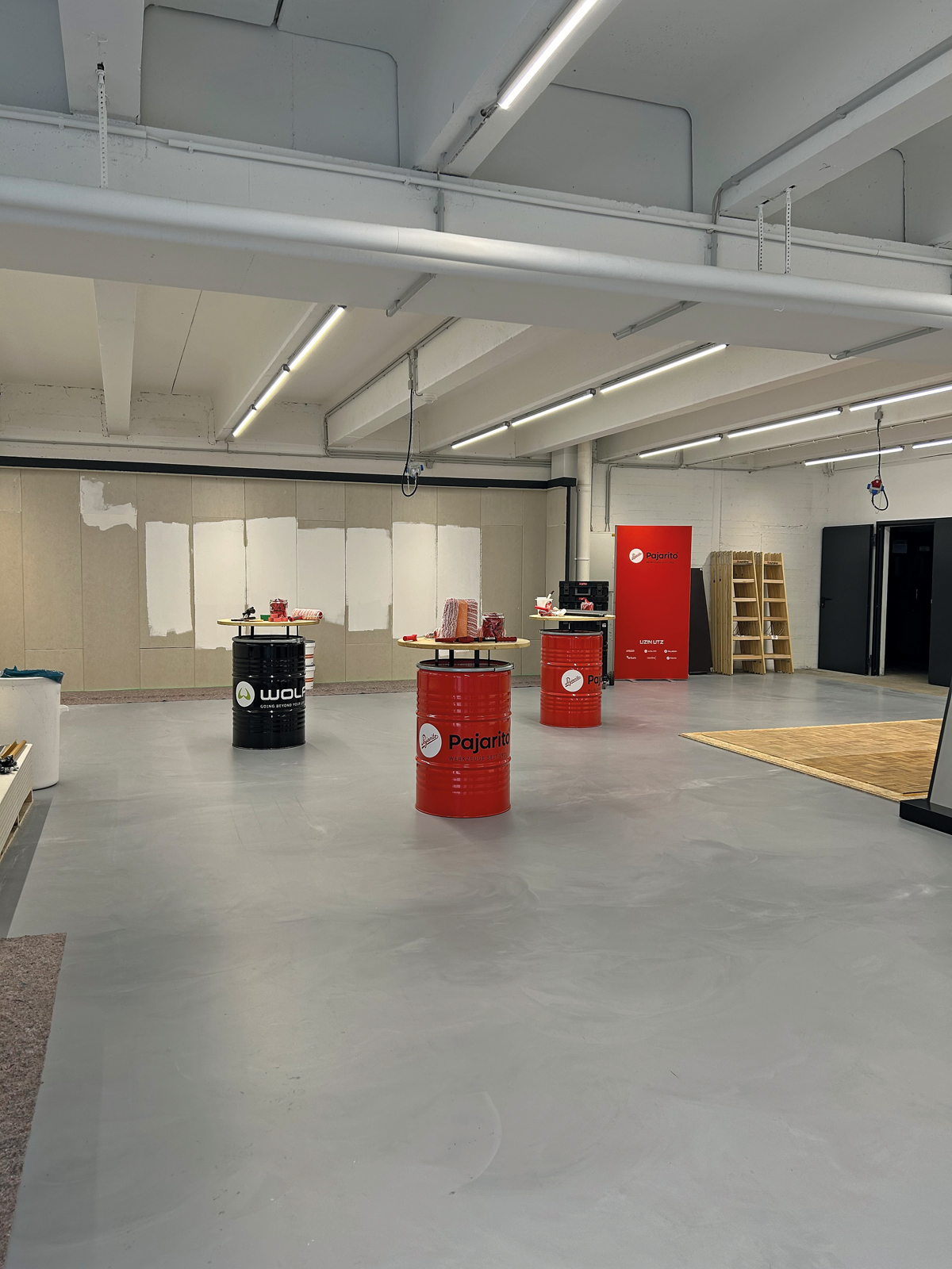 Nach zehnmonatiger Planungs- und Umbauphase konnte Pajarito, Hersteller für den professionellen Malerbedarf, die Tore zu den neuen Schulungsräumlichkeiten öffnen. Die 300 m² große Fläche bietet Möglichkeiten zur vielfältigen Nutzung. Direkt am Firmenstandort Mettmann, zentral im Westen Deutschlands. Auch die anderen Marken aus dem Uzin Utz Markenverbund profitieren davon. Ein Drittel der Fläche entfällt dabei auf den Theorieraum, der Showroom für die praktischen Vorführungen nimmt 200 m² ein. »Wir möchten unseren Kunden einen noch größeren Mehrwert bieten. Dazu gehört, dass sie unsere Produkte live erleben und selbst testen können, um den bestmöglichen Umgang damit zu erlernen«, erklärt Will Eulenbach, Verkaufsleiter der Marke Pajarito. »Durch diese direkte Interaktion kommen wir auch mit den Handwerkern ins Gespräch, erfahren mehr über ihre täglichen Herausforderungen und können unsere Produkte optimal auf ihre Bedürfnisse abstimmen.« Nicht nur Handwerker sind herzlich willkommen, auch andere Gewerke und Objekteure können von diesem Angebot profitieren.