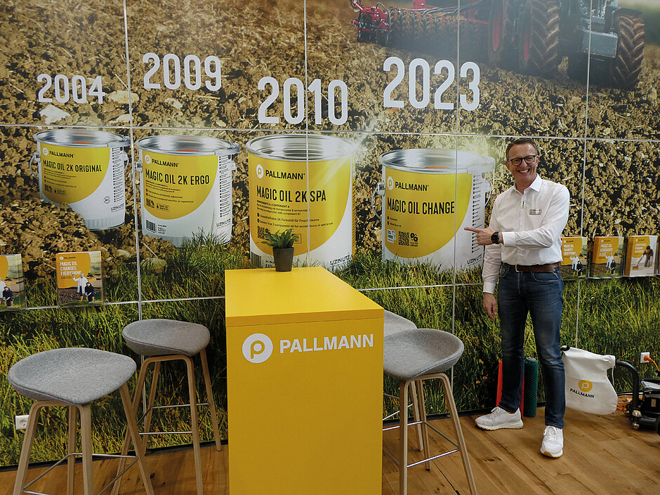 »›Magic Oil Change‹ verändert vieles. Für Parkettleger, für Endkunden und für die Umwelt. Denn es besteht nicht nur zu über 90 Prozent aus nachwachsenden Rohstoffen, sondern der Rohstoff kommt von Landwirten aus der Region Würzburg«, fasst Frank Weigl aus der Pallmann Entwicklung die Vorteile des neuen Produktes zusammen.