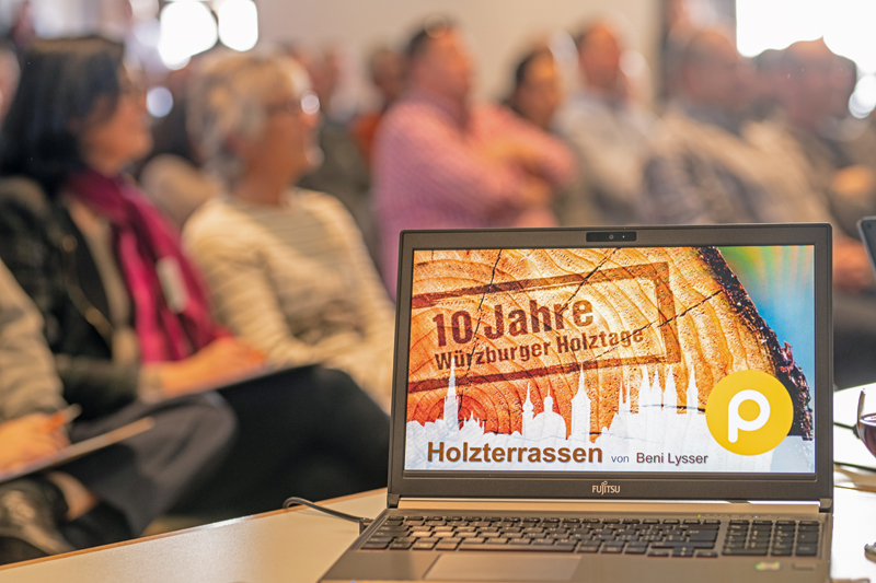 Bei der diesjährigen Veranstaltung setzte man insbesondere auf Expertenwissen und Know-how aus der Schweiz. Eröffnet wurde die Veranstaltung durch den Vortrag von Bernhard Lysser, Oberexperte der Interessengemeinschaft der Schweizerischen Parkett-Industrie und Mitglied von »Swiss Experts«. Er entführte seine Zuhörer mit dem Thema »Holzterrassen« sinnbildlich nach draußen. Hier erfuhren die Teilnehmer, was es bei der richtigen Holzauswahl im Außenbereich zu beachten gibt, welche Möglichkeiten zur Reinigung und Renovierung bestehen und wie Holzterrassen durch die richtige Pflege lange wertig und schön bleiben.