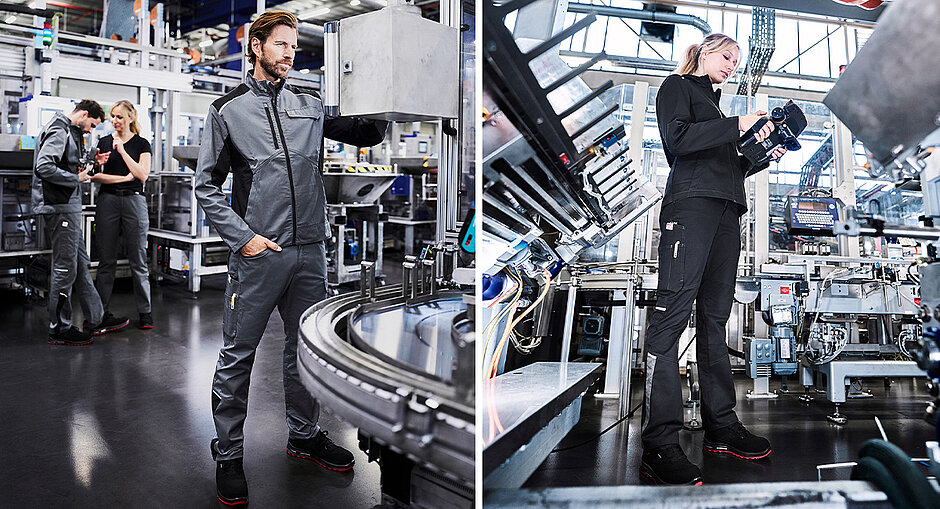Ergonomische Schnitte, elastische Bundeinsätze und intelligent platzierte Taschen ermöglichen entspanntes Arbeiten in jeder Position. Besonders beanspruchte Stellen sind nahtlos verarbeitet – für maximalen Komfort ohne Druckstellen. Dank des neuen Größensystems mit drei Längenvarianten passen die Herrenhosen wie angegossen. Bei der Damenlinie sorgen spezielle Damenschnitte dafür, dass Jacke und Hose perfekt sitzen.