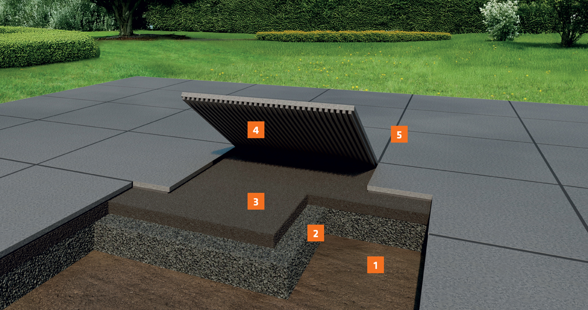 Pflaster- und Natursteinflächen sind Witterung, Bewuchs und starker Beanspruchung ausgesetzt. Dies kann zu Verfärbungen, Unebenheiten und Schäden führen. Die PCI-Systemlösungen sind sicher, einfach zu verarbeiten und versprechen langlebige Ergebnisse. Beim ersten System geht es um die Sanierung von begehbaren Außenflächen (z. B. Terrassen, Gartenwege). Als Planum dient ein ebener, verdichteter Untergrund. Die Tragschicht besteht aus einer Schottertragschicht aus Frostschutzmaterial. Als Bettungsschicht kommt der Drain- und Verlegemörtel »PCI Pavifix DM« zum Einsatz. Die Haftbrücke wird mit »PCI Carrament grau«, einem Mittelbett- und Ansetzmörtel für Naturstein- und Feinsteinzeugbeläge, gebildet. Abschließend wird der Fugenmörtel »PCI Pavifix 1K Extra« appliziert.