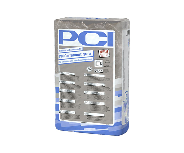 Naturstein liegt im Trend, neben der Verwendung in Innenräumen zählt Naturstein insbesondere im Außenbereich zu den wichtigsten und mit am häufigsten eingesetzten Belägen. Der sehr emissionsarme Ansetz- und Mittelbettmörtel PCI Carrament® grau ist seit vielen Jahren der Klassiker im Bereich Natursteinverlegung. Er ist als Dünn- oder Mittelbettmörtel einsetzbar, kann aber auch als Haftschlämme für die Bettung in Drainmörtel 'frisch in frisch' verwendet werden.