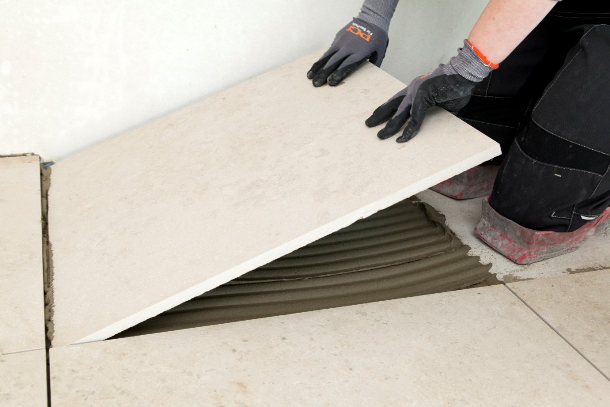 Der hohe Ausführungskomfort von PCI Carrament® grau ist für Handwerker von großem Vorteil: Der verformungsfähige Verlegemörtel vereint den Verar-beitungskomfort eines Schnellklebers mit dem eines normal abbindenden Klebers. Seine kurze Abbindezeit sorgt dafür, dass die verlegten Beläge – unabhängig von der Temperatur – schon nach ca. 4 Stunden begehbar und verfugbar sind. Das spezielle Bindemittelsystem von PCI Carrament® grau bindet das gesamte überschüssige Anmachwasser. Damit bleibt kein Wasser übrig, das in den Stein eindringen und dort Verfärbungen oder Aufschüsselungen verursachen könnte. Auch hohe Temperaturen können dem optimierten Ansetz- und Mittelbettmörtel nichts anhaben: Wo viele Schnellkleber bei warmen klimatischen Verhältnissen noch schneller anziehen und dadurch das Schadensrisiko steigt, punktet PCI Carrament® grau mit seiner komfortablen Verarbeitungsdauer. Dazu ist seine Konsistenz variabel einstellbar – als Dünnbett-, Fließbett- oder Mittelbettkleber. Bei der Verlegung sorgt das spezielle Korngerüst von PCI Carrament® grau für ein stabiles Kleberbett, in dem auch große und schwere Natursteinplatten nicht einsinken.