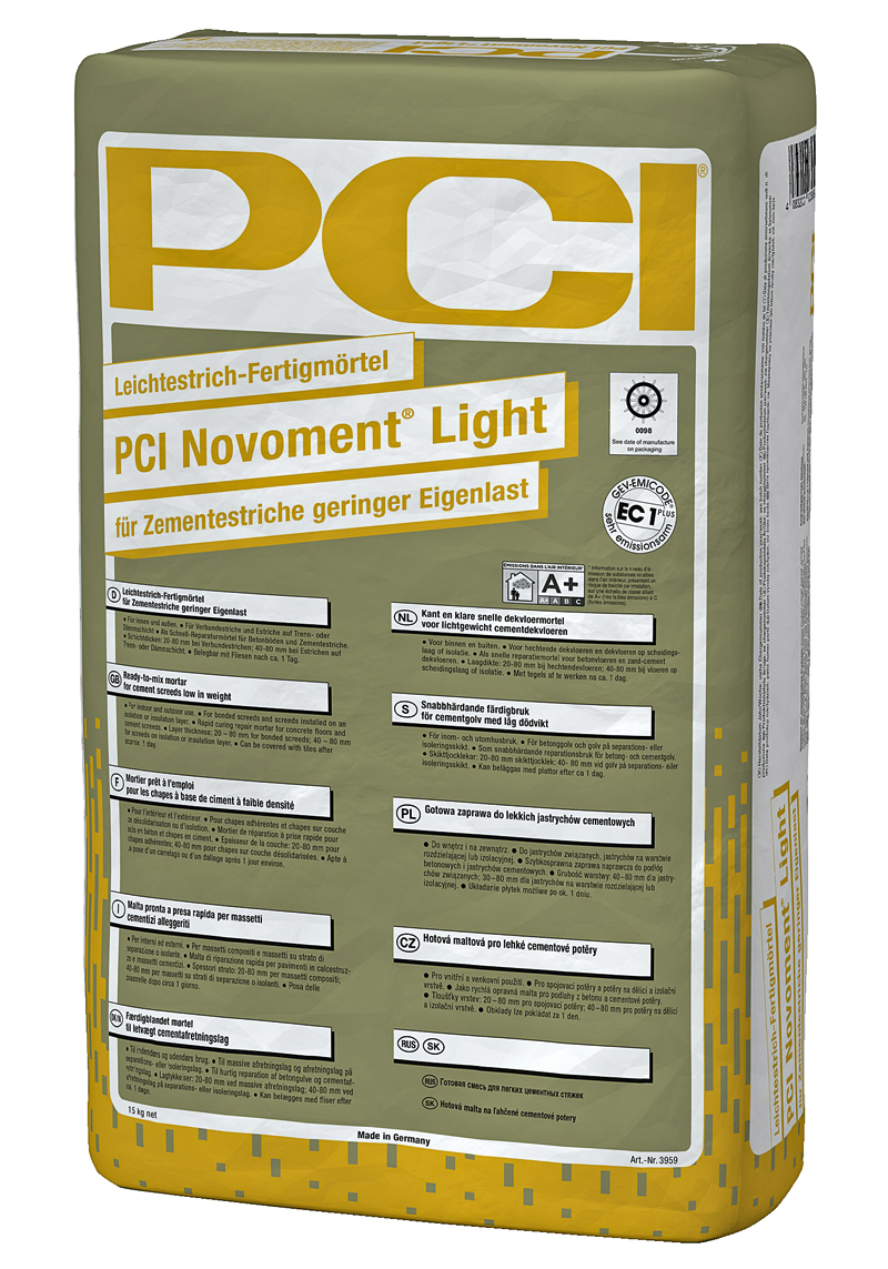 Der neue Leichtestrich-Fertigmörtel lässt sich laut Hersteller innerhalb eines Zeitfensters von circa einer Stunde bearbeiten und trockne trotzdem schnell durch. Schon nach rund sechs Stunden sei der Estrich begehbar und nach bereits etwa einem Tag mit Fliesen belegbar. Der neue Fertigmörtel ist schwund- und verwölbungsarm, wodurch ein Aufschlüsseln in den Randbereichen nahezu ausgeschlossen sei. Auch unter Fußbodenheizungen sowie für Kellerböden und in Duschbereichen ist »PCI Novoment Light« geeignet.