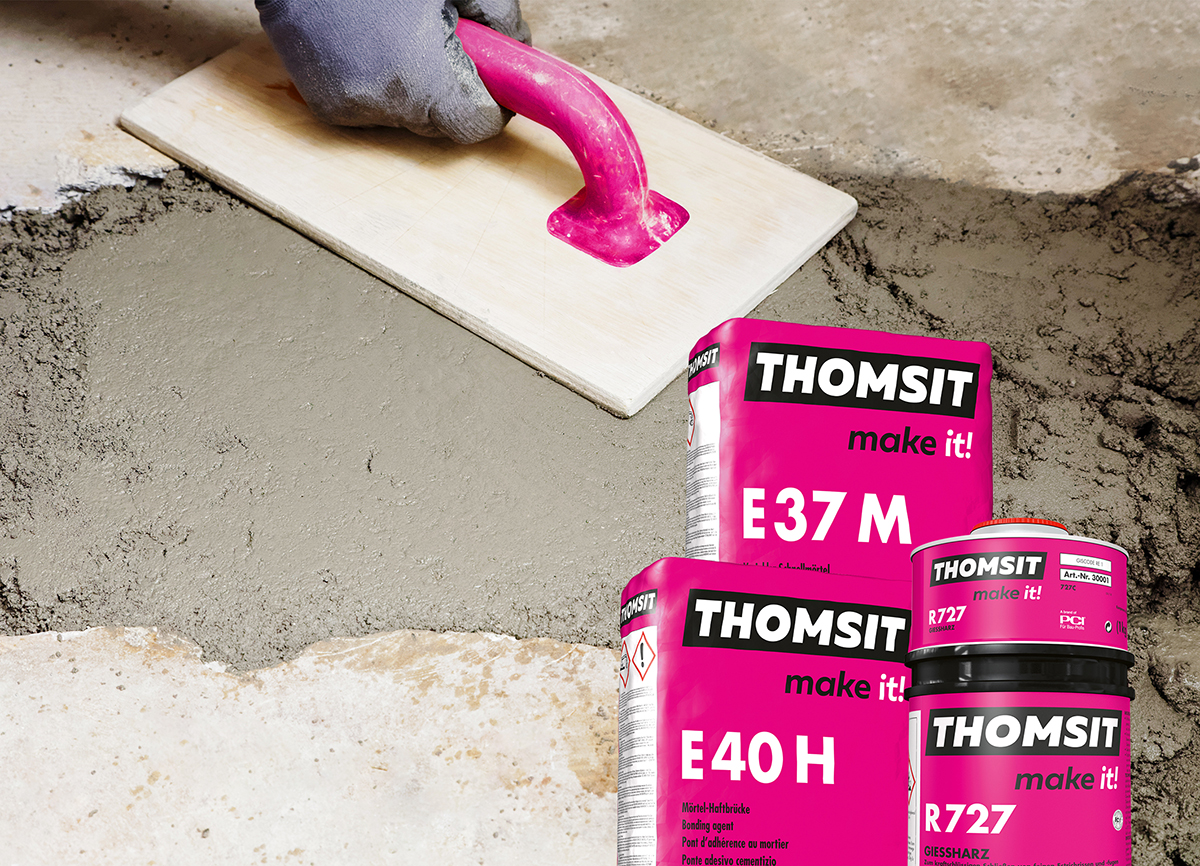 - THOMSIT R 727: Gießharz zum kraftschlüssigen Schließen von feinen Estrichfugen und -rissen