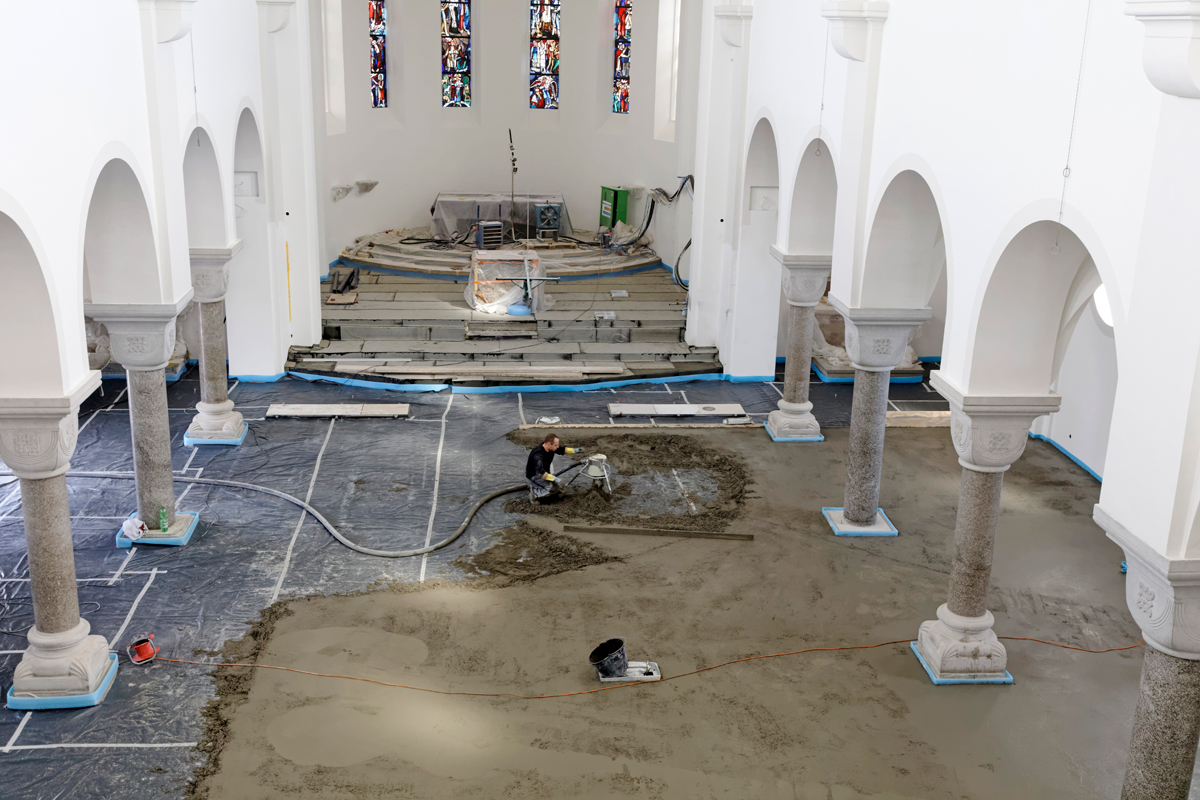- Standfester Estrich: »PCI Novoment M1 plus« (Schnellestrich-Fertigmörtel für schnell belegreife Zementestriche); alternativ auf statisch kritischen Untergründen: »PCI Novoment Light«