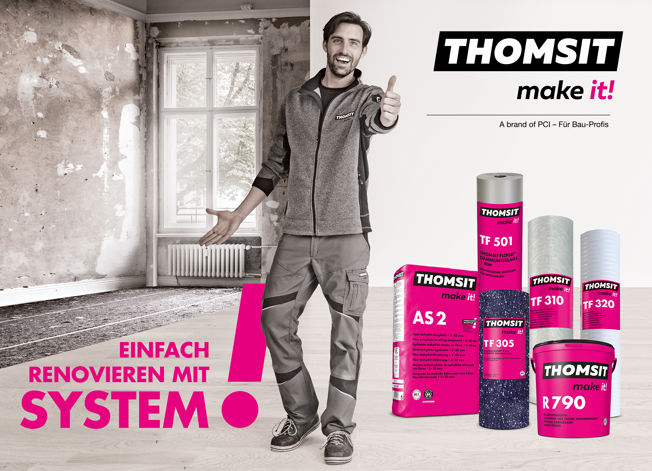 „Dieses Renoviersystem bietet dem Handwerker enorme Pluspunkte: geringere Kosten, geringerer Personaleinsatz, einfache Handhabung und noch dazu einen schnellen Baufortschritt“, so Stephan Tschernek, Leiter Marketing PCI Gruppe. „Einfache, schnelle und unkomplizierte Lösungen auch für schwierige Sanierungsfälle – das ist ein deutlicher Wettbewerbsvorteil dank THOMSIT.“