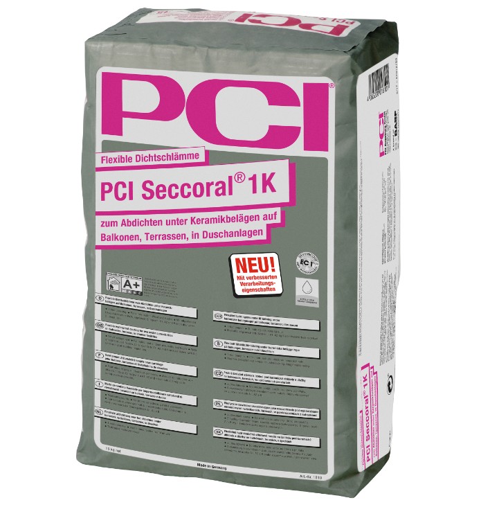 PCI Seccoral 1K ist die sichere Lösung für Verbundabdichtungen im Innenbereich gemäß DIN 18534 ebenso wie für Balkone, Loggien und Laubengänge im Außenbereich nach DIN 18531. Die rissüberbrückende Dichtschlämme deckt alle täglichen Abdichtungsarbeiten von Fliesen- und Natursteinlegern ab und ist ohne Grundierung oder Haftbrücke haftsicher. Durch die optimale Anhaftung lassen sich mit PCI Seccoral 1K auch Formteile, Dichtbänder und Dichtmanschetten des PCI-Abdichtungssystems PCI Pecitape zuverlässig und sicher verkleben. An die gesundheitlich unbedenkliche Verarbeitung hat PCI bei der Überarbeitung von PCI Seccoral 1K ebenfalls gedacht: Die Dichtschlämme ist gegenüber der alten Rezeptur geruchs- sowie staubminiert und zudem sehr emissionsarm nach GEV-EMICODE EC1 PLUS.