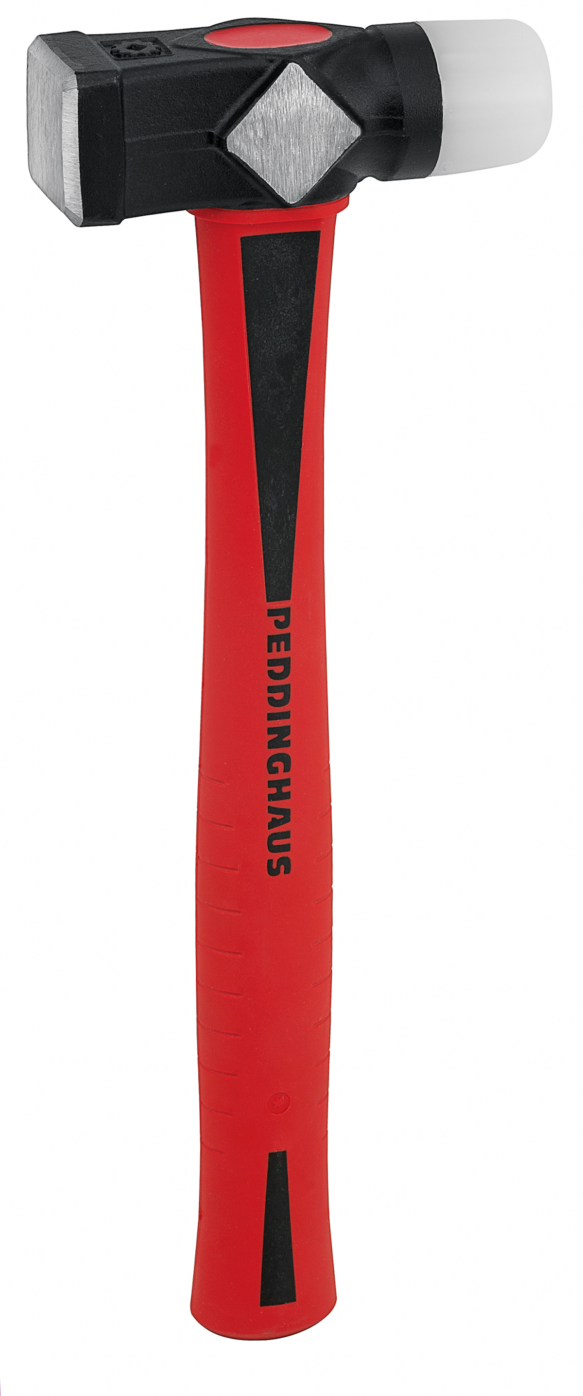 Die Schonhammerseite wurde so konstruiert, dass die Nyloneinsätze auch ausgetauscht werden können. Eine Besonderheit ist der ergonomisch geformte, unzerbrechliche »Ultratec«-Stiel, der aus drei verschiedenen Komponenten besteht. Ein unzerbrechlicher Glasfaserkern sorgt für hohe Widerstandsfähigkeit. Polypropylen gibt festen Halt auch bei harten Schlägen. Und Elastomer macht den Griff flexibel und extrem belastbar. Der Hammer kann in seiner vollen Länge genutzt werden und ist durchgehend ergonomisch.
