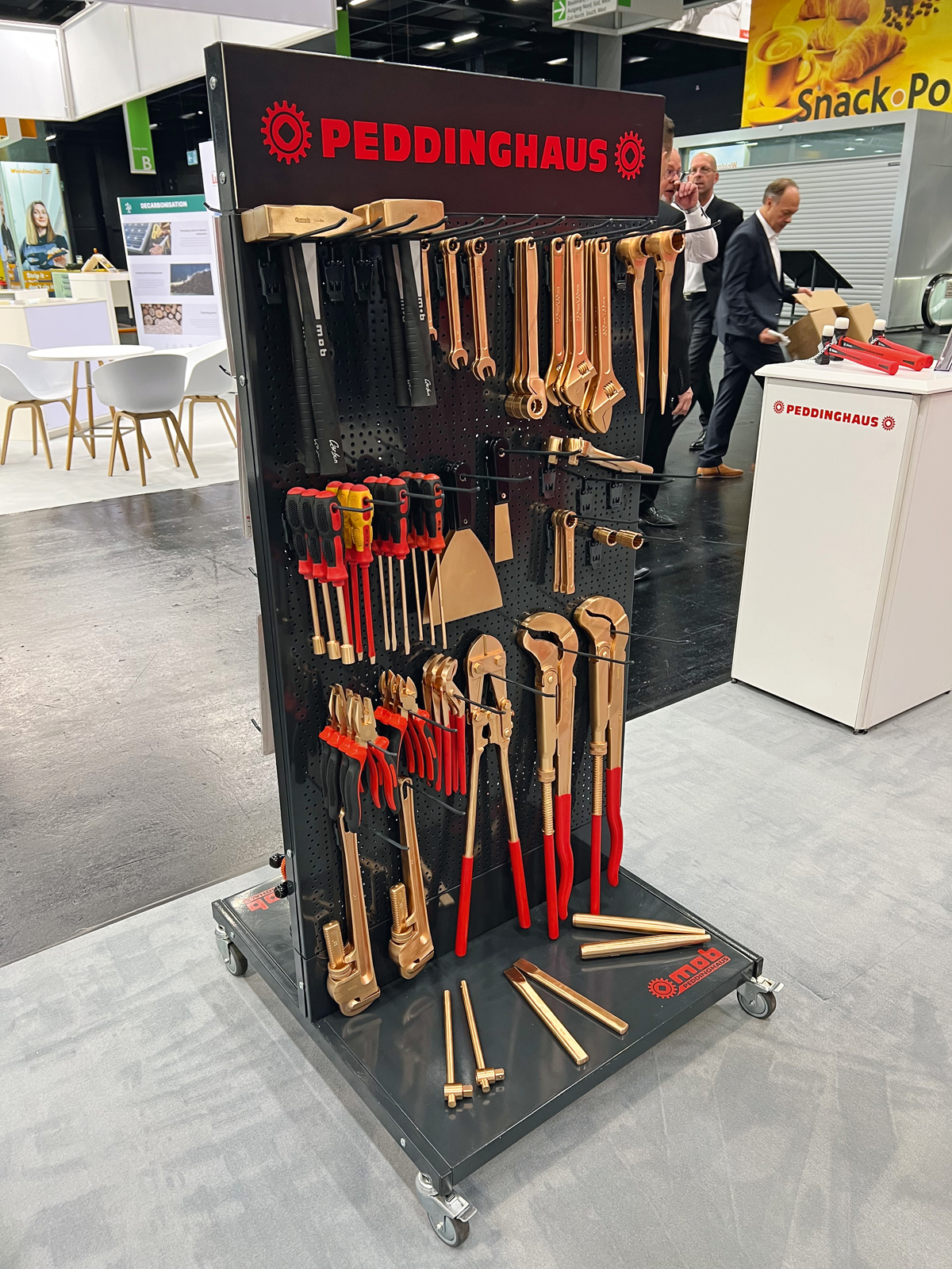 Ebenfalls in Köln vorgestellt wurde das funkenfreie Werkzeug von Peddinghaus. Diese Werkzeuge werden aus einer Kupfer-Beryllium-Legierung (Cu-Be) hergestellt, um eine große Sicherheit in exlplosionsgefährdeten Bereichen zu bieten. Zusätzlich zu seiner funkenfreien Eigenschaft ist die Kupfer-Beryllium-Legierung nicht magnetisch und korrosionsbeständig. Angewendet werden die funkenfreien Werkzeuge etwa in der Petrochemie, der chemischen und pharmazeutischen Industrie, aber auch in der Lebensmittelindustrie, der Automobilindustrie, im Eisenbahnbereich oder zur Brandbekämpfung.