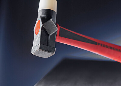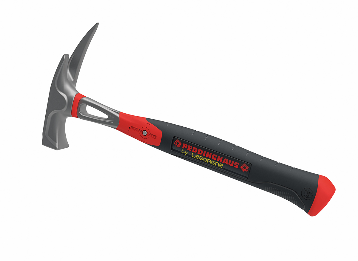 Durch den patentierten »Nanovib«-Griff absorbiert der Vorschlaghammer bzw. der Fäustel von Leborgne laut Peddinghaus etwa 45 Prozent der bei der Nutzung entstehenden Vibration und vermindert dadurch das Risiko von berufsspezifischen Begleiterkrankungen. Zum Leborgne-Sortiment zählt außerdem ein Latthammer, der sich dank des »Nanovib«-Verbindungsstücks durch eine um 40 Prozent reduzierte Vibration auszeichnet. Der Latthammer wurde aus geschmiedetem, gehärtetem und angelassenem Carbonstahl gefertigt. Er verfügt über einen ergonomischen, rutschsicheren 3-Komponenten-Griff. Sein breites Griffende verhindert das Abrutschen. Ein magnetischer Nagelhalter sowie seitliche Schlagflächen gehören ebenfalls zu den Merkmalen des Latthammers.