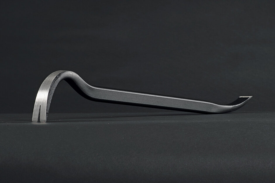 Durch die progressive Krümmung des Nageleisens wird die Kraftübertragung beim Nagelziehen um 60 % gesteigert. Weitere Vorzüge bietet laut Peddinghaus der ovale Querschnitt im Griffbereich in Richtung der Krafteinwirkung, der sich angenehm greifen lässt und das tägliche Handling wirksam erleichtert.