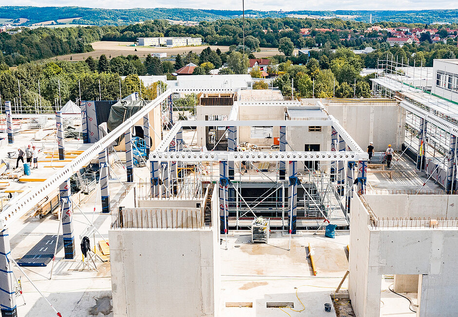 Das neue Forschungs- und Entwicklungsgebäude in Göttingen verfügt insgesamt über vier Obergeschosse und ein Kellergeschoss. Die Umsetzung des Rohbaus sowie die Primärtragkonstruktion übernahm der Projektbauspezialist Brüninghoff aus dem münsterländischen Heiden. Das Kellergeschoss wurde als Massivbau in Stahlbeton umgesetzt. Auch die Erschließungskerne, die Treppen und Aufzugschächte beherbergen, wurden massiv ausgeführt.
