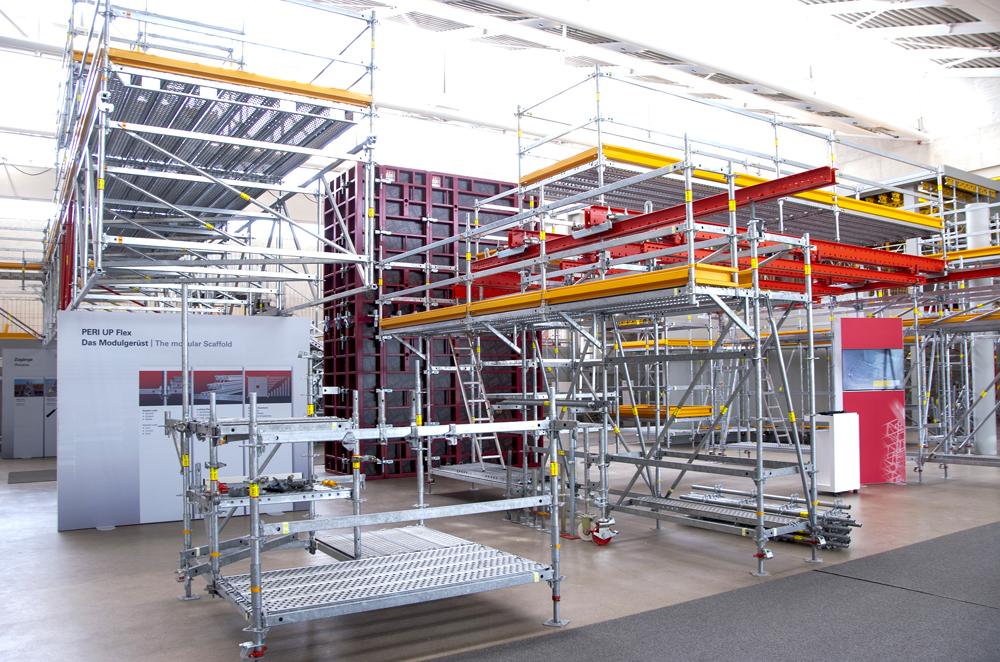 Und so hat das Unternehmen mit »Peri UP« einen Gerüstbaukasten entwickelt, der durch eine besondere Konstruktion auffällt. Für das Rahmengerüst »Peri UP Easy« sowie das Modulgerüst »Peri UP Flex«, das unter anderem bei komplexen Gebäudegeometrien und in der Industrie zum Einsatz kommt, sprechen nach Unternehmensangaben die Aufbauschnelligkeit und damit eine hohe Wirtschaftlichkeit, da der Gerüstbauer nur auf weniger Systemkomponenten zurückgreifen muss, um sein Gerüst zu erstellen.