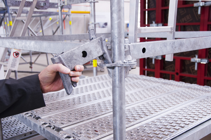 Erfindergeist beweist Peri aber nicht nur bei der Entwicklung neuer Schalungslösungen und Zubehörteile, sondern auch im Segment Gerüsttechnik strebt das Unternehmen innovative Lösungen an. »Der Gerüstbau ist hochanspruchsvoll, da die Anforderungen an die Systeme immer komplexer werden. Gerade wenn es um die leichte Handhabung der einzelnen Gerüstteile oder um die Sicherheit der Monteure und Nutzer geht«, erklärt Sven Meißner. »Unser Ziel war es von Anfang an, Gerüstlösungen zu entwickeln, die wenig Gewicht, hohe Sicherheit, eine schnelle Montage und große Anwendungsvielfalt bieten.«