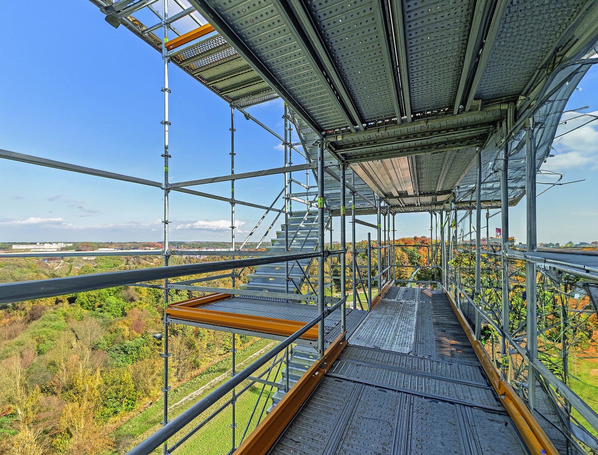 Sichere Gerüstnutzung: Ebene, geschlossene Gerüstflächen ohne Belagspalt und Stolperkanten sorgen für eine sichere Arbeitsumgebung.