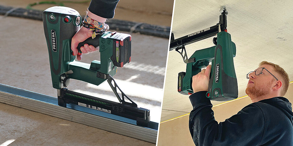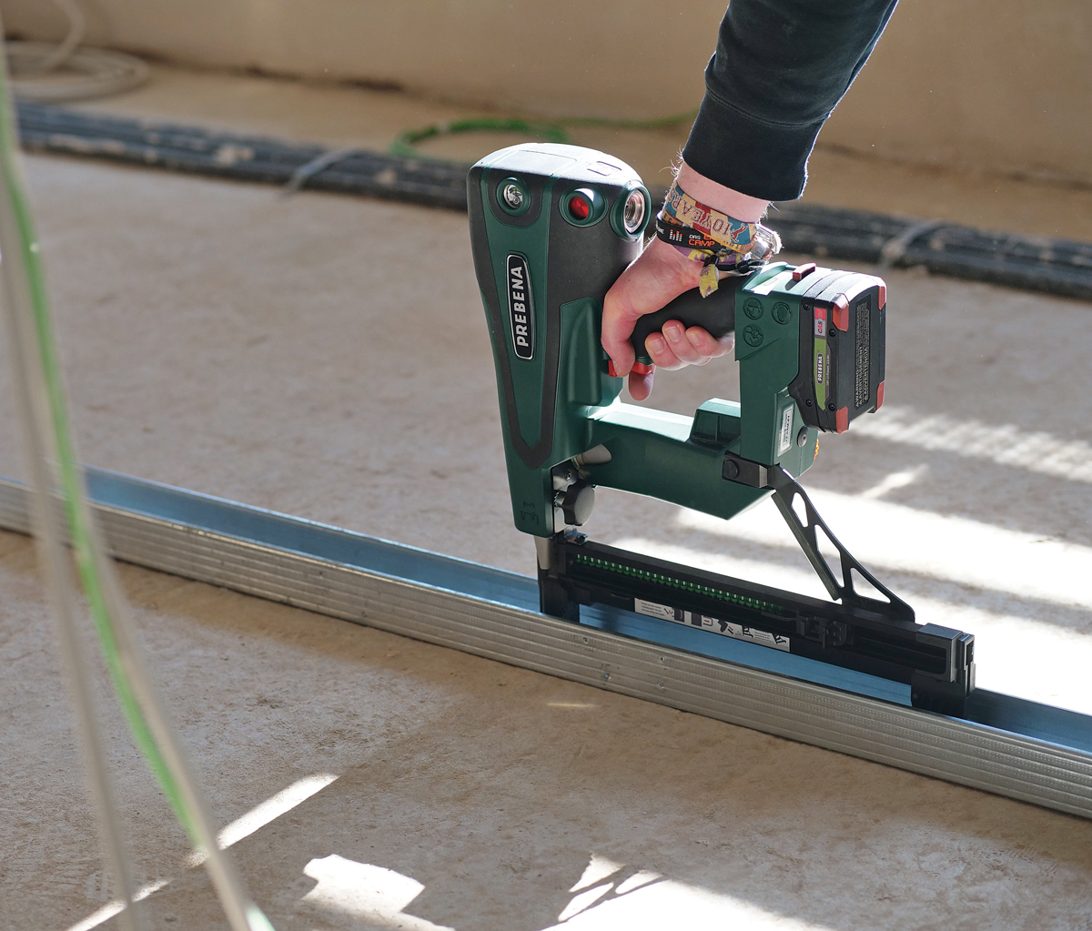 Der Betonnagler wurde für den Baustelleneinsatz entwickelt. Durch die kompakte Bauweise und die enorm hohe Einschlagkraft ist die einhändige Bedienung laut Prebena kein Problem. Tiefeneinstellung und Leerschusssicherung gehören zur Standardausstattung.