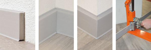 Der Hersteller setzt auf Anwenderfreundlichkeit. Ecken und Endstücke des Vollkunststoffsockels werden individuell und schnell aus einem Teil gestanzt, offene Außenecken gehören damit der Vergangenheit an. Die unkomplizierte Montage erfolgt geschraubt oder geklebt.