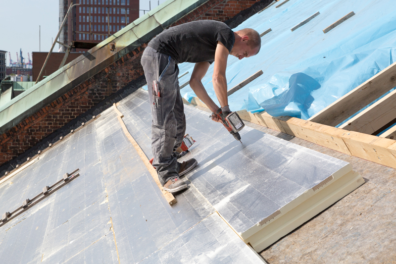 Die Metalldachdämmelemente puren MetalFix gelten mit ihren Maßen von 2400 x 620 mm als leichte Einmannelemente und sind deshalb auch unter schwierigen Bedingungen solide zu verarbeiten. Um die luft- und dampfdichte Ausführung des Dachaufbaus zu sichern, gehört eine diffusionsdichte Systemdampfsperre immer dazu.