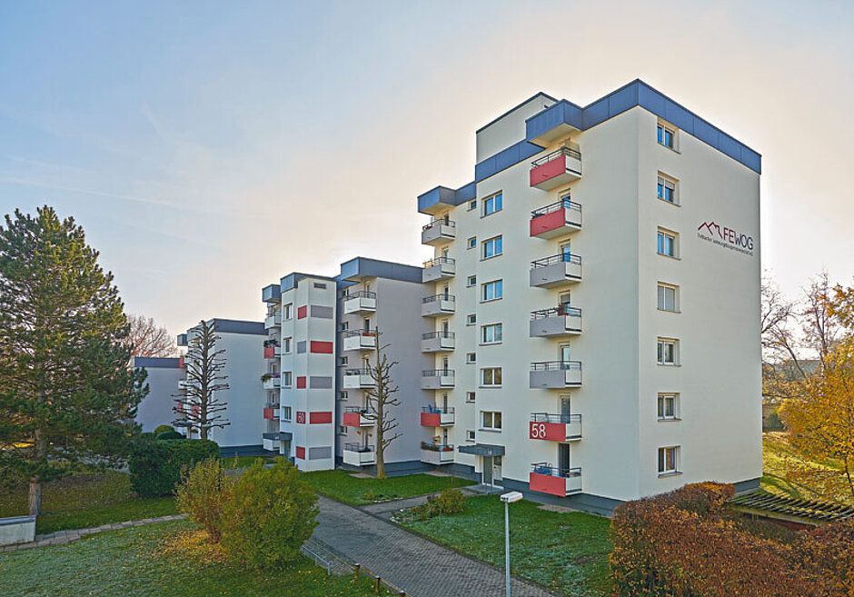 Die FEWOG bewirtschaftet in Fellbach rund 600 Wohnungen, die schrittweise auch dämmtechnisch erneuert werden. Das Sanierungsobjekt mit vier Eingängen und 35 Wohnungen beginnt an der Straße mit sieben Geschossen und verspringt über fünf und vier auf letztendlich drei Geschosse. Für die Sanierung der Mehrfamilienwohnanlage mit 35 Wohnungen setzte sich die Wohnungsbaugenossenschaft mit den unterschiedlichen WDV-Systemen auseinander: Mineralwolle ist unbrennbar, EPS preiswert, und was kann PU? Der duroplastische Schaumstoff Polyurethan ist erst seit Ende 2014 bauaufsichtlich für WDVS zugelassen und damit ein Neuling in dem sich nur langsam wandelnden Baumarkt. PU bietet eine ganze Reihe von Vorteilen, die bei dem Bauvorhaben überzeugt haben.
