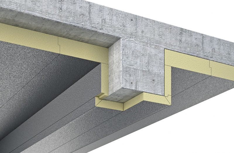 Neu ist eine speziell gefräste Eck- und Abschlussplatte. Eine 90°-Fräsung erlaubt dabei die Faltung der Platte und damit die einfache und saubere Herstellung von Außenecken ohne nachträgliche Beschichtung. Zum Einsatz kommt die Puren Eck- und Abschlussplatte mit den Maßen 1200 x 600 mm z. B. an Unterzügen, die rundum gedämmt sein sollen. Während Garagendecken in der Fläche erheblich zum Wärmeschutz des Gebäudes beitragen und mit etwa 120 mm »Puren TG« gut gedämmt seien, bieten die 60 mm dicken »TG EAP«- oder »TG«-Laibungsplatten für Unterzüge einen guten Kompromiss aus Wärmebrückenvermeidung und Durchfahrtshöhe. Die »TG-Laibungsplatten gibt es in den Maßen 1200 x 600 mm und 2400 x 600 mm. Sie versprechen laut Puren schnelle und wirkungsvolle Dämmeinsätze. J