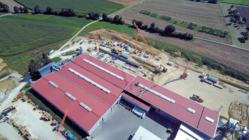 In drei Bauabschnitten werden sukzessive bis Herbst 2022 neben einer neuen Produktionshalle auch zusätzliche Lagerflächen für aus Werkstoffkreisläufen stammende Sekundärrohstoffe sowie für Fertigprodukte erstellt. Neue Büro- und Sozialräume für Beschäftigte runden die Werkserweiterung ab.