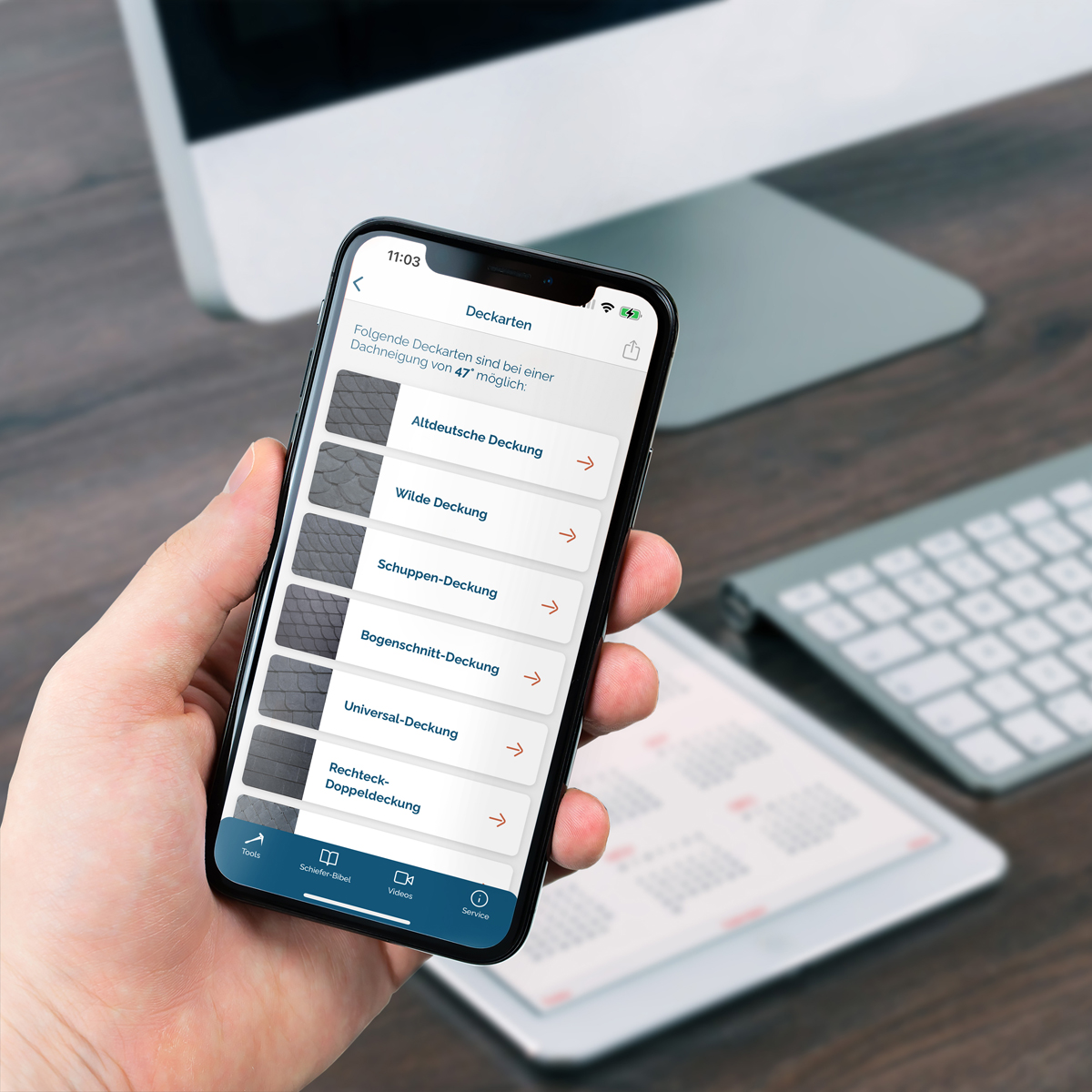 Neben den Standard-Eigenschaften wie der Ermittlung der benötigten Steingrößen anhand der Dachneigung oder der Bemaßung der Gebindesteigung, finden die User zusätzlich zu den bekannten Deckarten fürs Dach alle Fassadendeckarten auf einen Blick. Besonders einfach gestaltet sich die Planung der jeweiligen Eindeckung durch das Listen des passenden Zubehörmaterials, was ebenfalls zu den Neuerungen zählt. Zudem ergänzen visuelle Features die App. So werden beispielsweise alle Kehldeckungen durch Skizzen veranschaulicht, die bestehenden Videos durch neue Verlege-Tutorials komplettiert, sowie eine Direkt-Verlinkung auf den Rathscheck Schiefer-Konfigurator zur schnellen Visualisierung der Deckarten geboten. Zusammengefasst bietet das Tool die digitale Alternative zur Schieferverlegebibel im Pocket-Format.