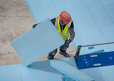 Bis zu 20 Prozent der Wärmeverluste eines Gebäudes können durch den Erdboden entweichen, besonders über die Seitenwände von Kellern. Hochtief setzt deshalb auch bei der nachhaltigen Wärmedämmung der Kelleraußenwände auf Ravago. Hier kommen auf einer Fläche von insgesamt 2 500 m² die »Ravatherm XPS 300 SL«-Dämmplatten in einer Stärke von 200 mm zum Einsatz. »Auch die Langlebigkeit der Produkte hat den Bauherren überzeugt«, hebt Joachim Dittweiler hervor: »Unsere Wandplatten sind qualitativ so ausgelegt, dass sie auch nach 50 oder mehr Jahren noch die volle Dämmleistung bringen. Sie lassen sich sogar wiederverwenden – was könnte nachhaltiger sein!«